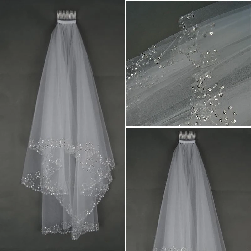 Хит, короткая свадебная фата с гребнем, блестящая Фата до локтя для невесты, цвета слоновой кости, белая вуаль, свадебные аксессуары
