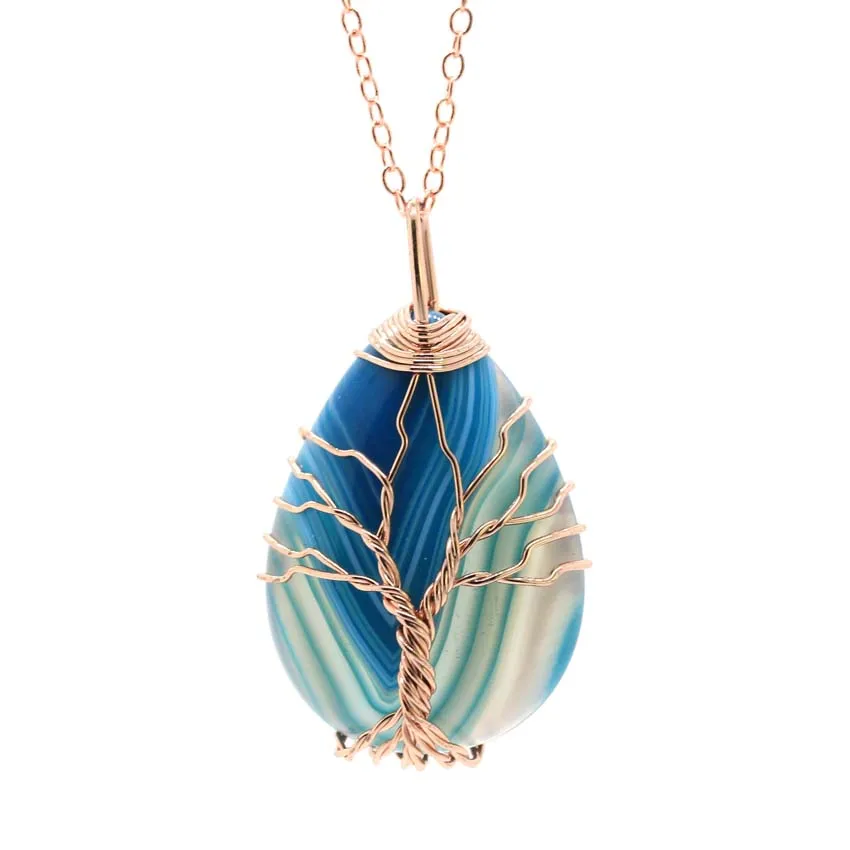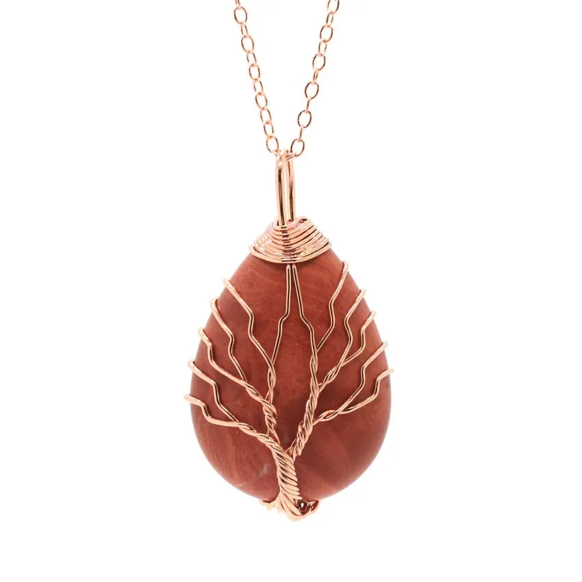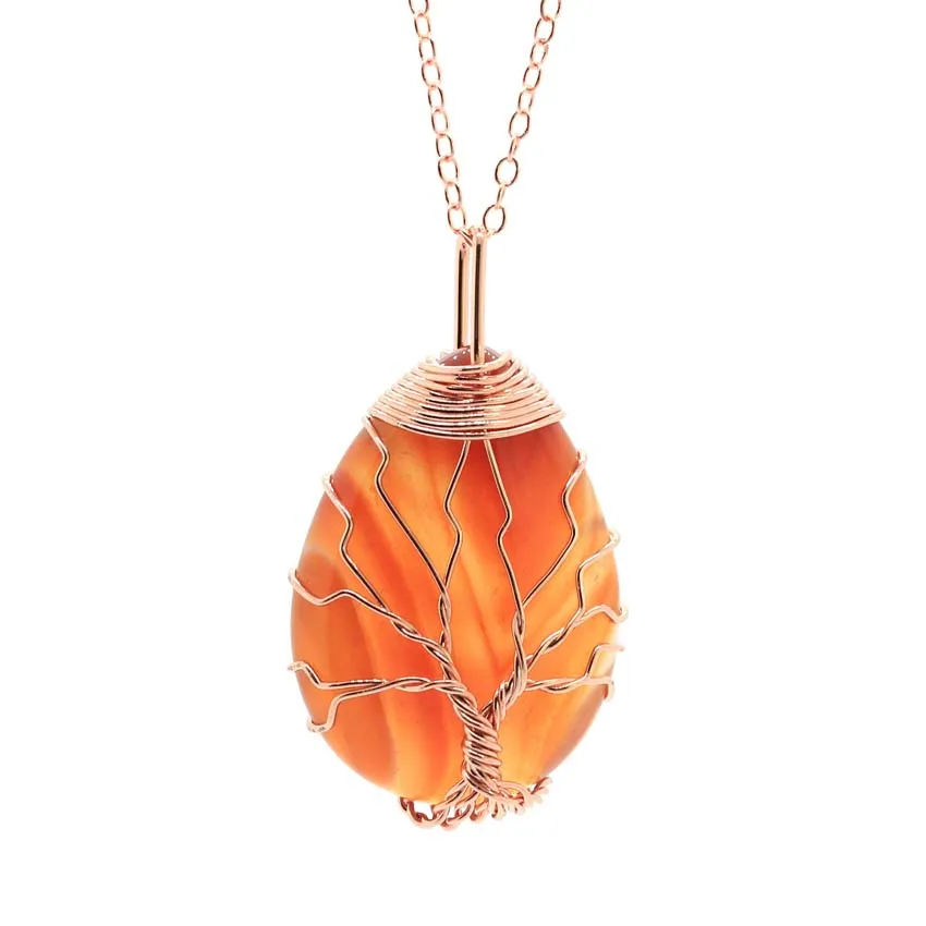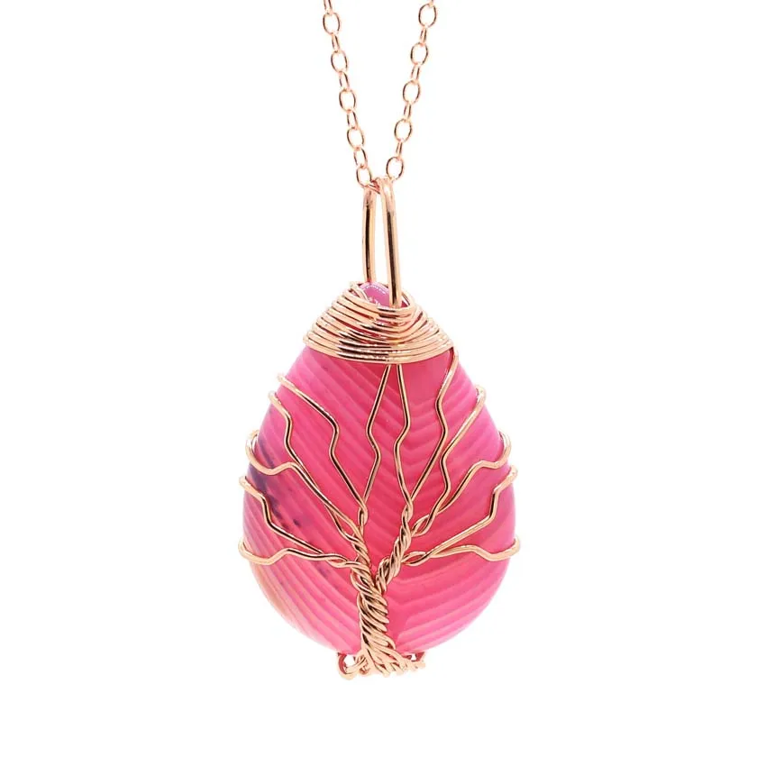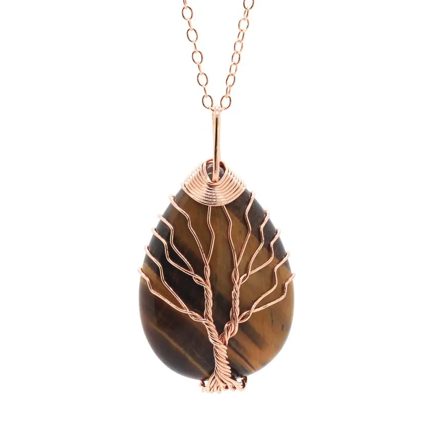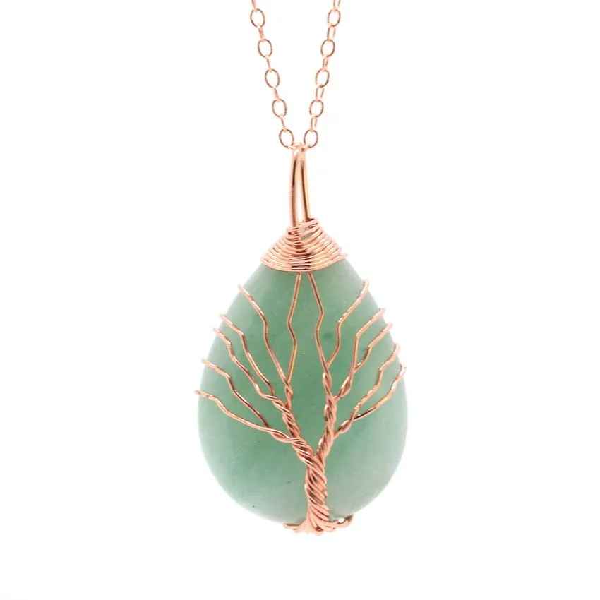 KFT натуральный лечебный Кристал, кварц камень «Reiki» кулон ручной работы обернутое Дерево жизни капля Аметист цепь ожерелье