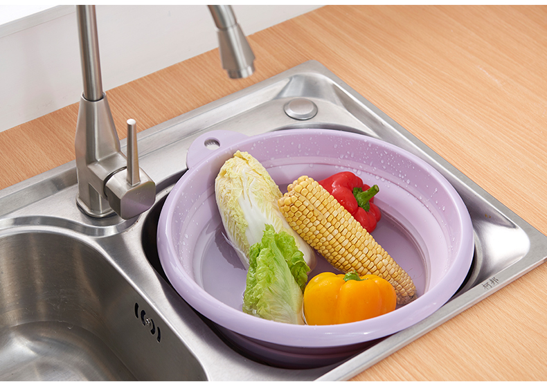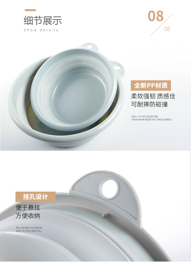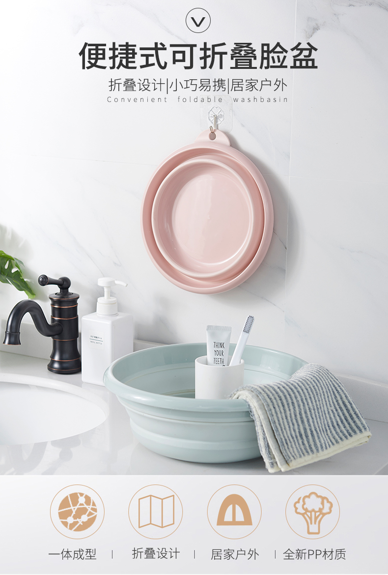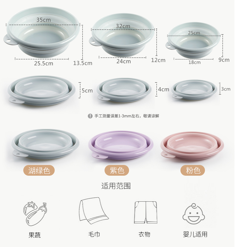 Складной умывальник, изготовлен из материала PP + TPR, с достаточным материалом, толстый и водонепроницаемый, не деформируется и не выцветает, сильный анти-падение, не легко повредить, большой, средний и маленький по желанию, может использоваться для мытья овощей, мытья лица, стирки, купания и т. д. Подходит для дома, прогулок и переноски, Складное хранение, с висячими отверстиями, можно повесить и хранить, экономя пространство