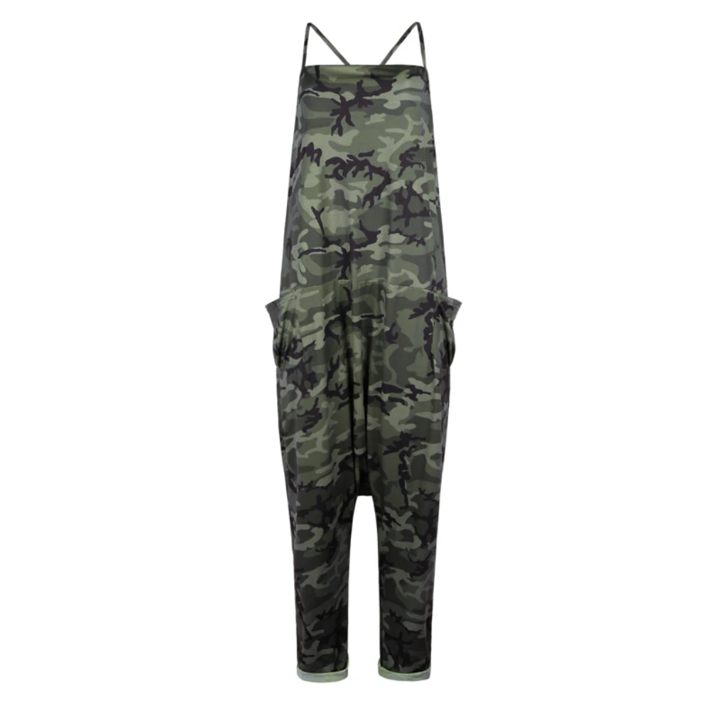 Летний женский камуфляжный комбинезон без рукавов с открытой спиной, мешковатые длинные штаны, комбинезон