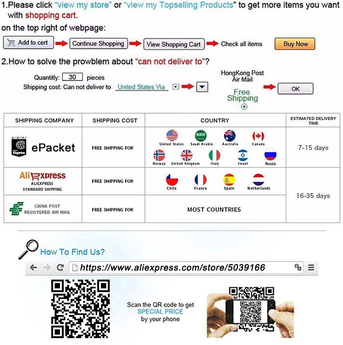 3. Если вы постоянный покупатель, и если вы дадите нам 5 звезд и положительные отзывы для вашего заказа. Когда вы размещаете новый заказ в нашем магазине. Вы можете отправить сообщение на ваш новый заказ и дать нам ваш последний номер заказа. Мы готовы предоставить вам подарок или скидку.