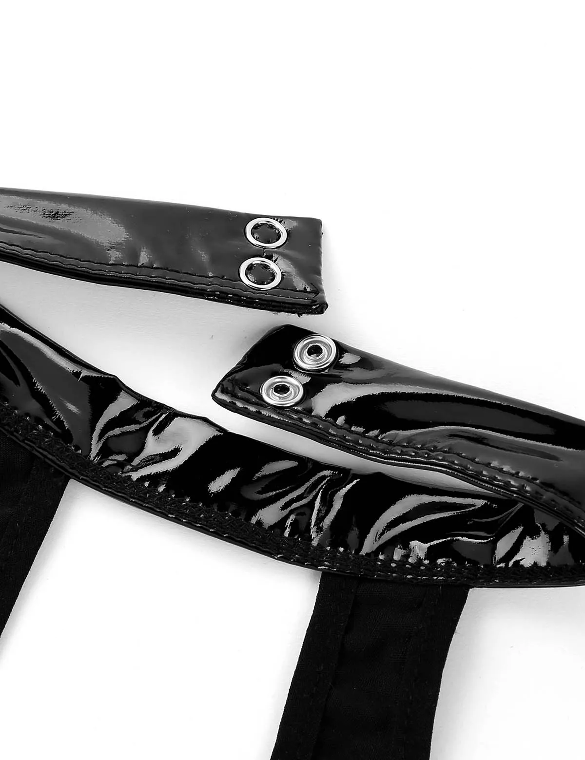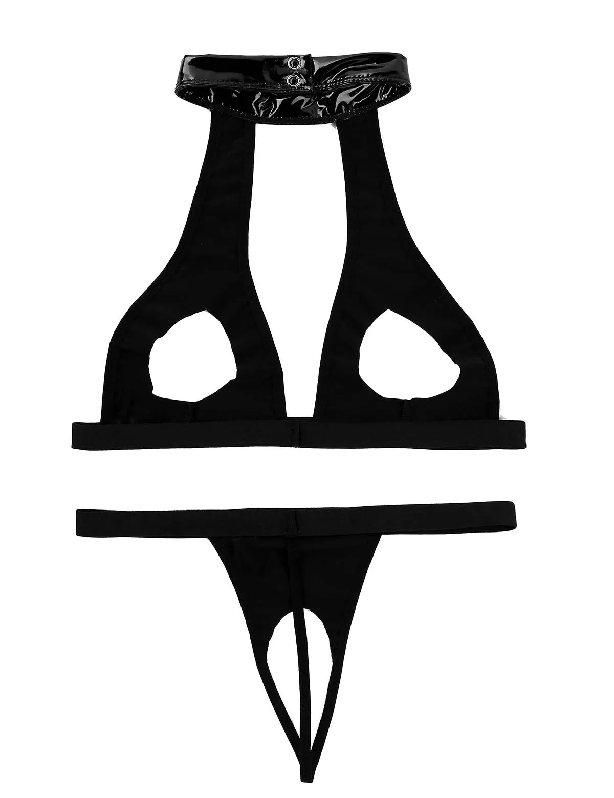 2Pcs womens wetlook faux leather lingerie sets, comfortable and stretchy fabric.