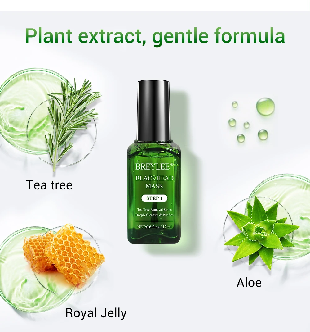 Маска для удаления черных точек BREYLEE Название продукта: маска от черных точек BREYLEE характеристики: 17 мл эффект: глубоко очищает, удаляет черные точки ингредиенты: вода/вода, масло листьев Melaleuca Alternifolia (чайное дерево), экстракт листьев алоэ барбаденсис, глицерин, маточное молочко типы кожи: подходит для различных типов кожи