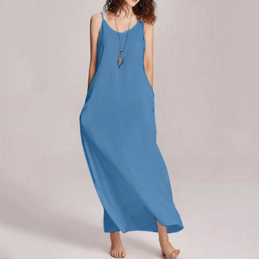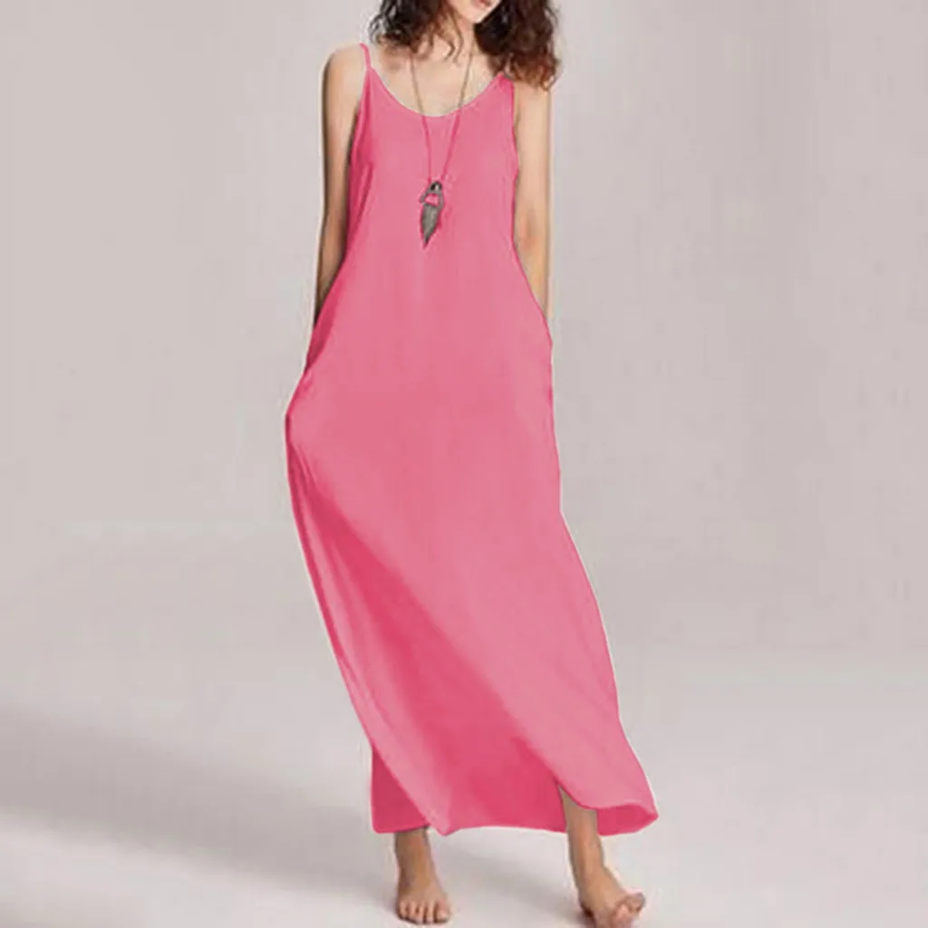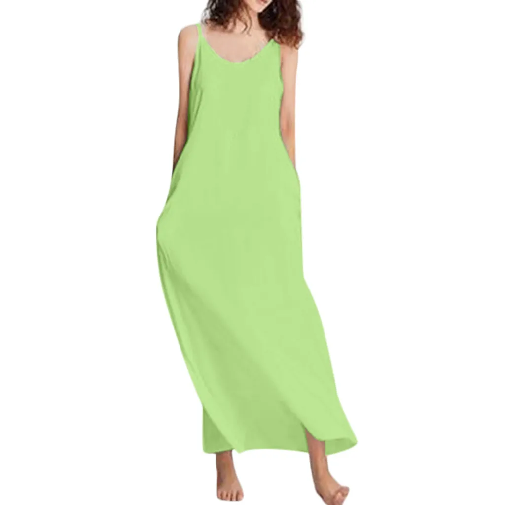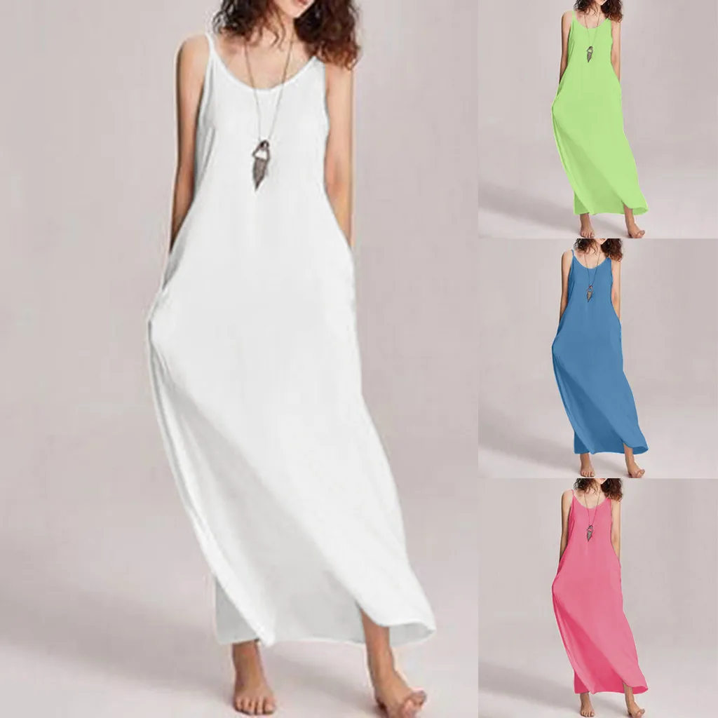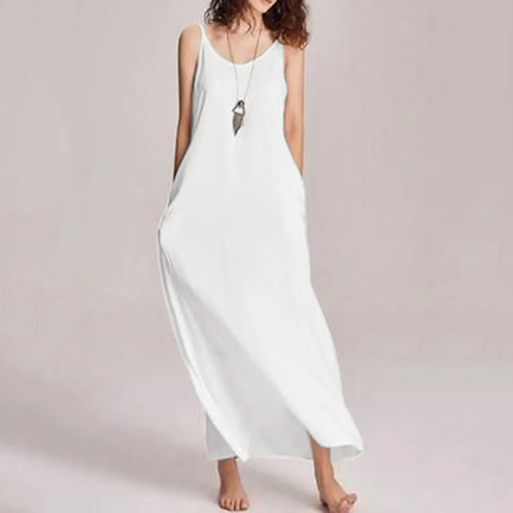 DescriptionПлюс размер 2XL летнее женское платье модное без рукавов Длинное свободное с o-образным вырезом повседневное пляжное платье льняные Хлопковые Платья