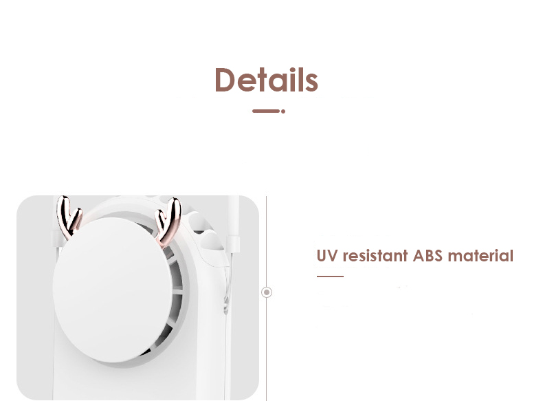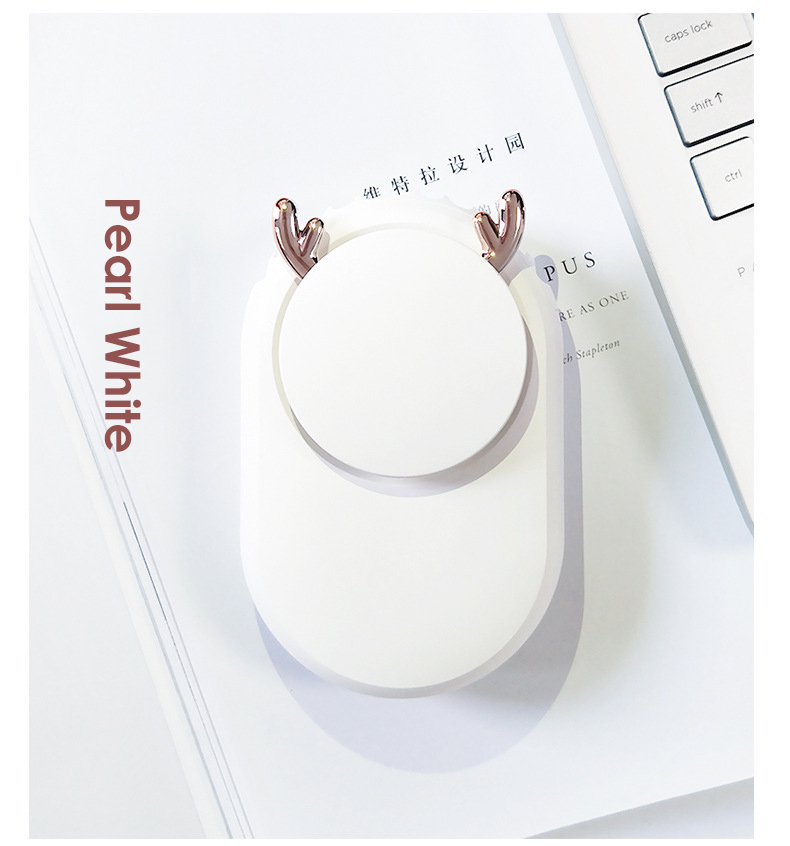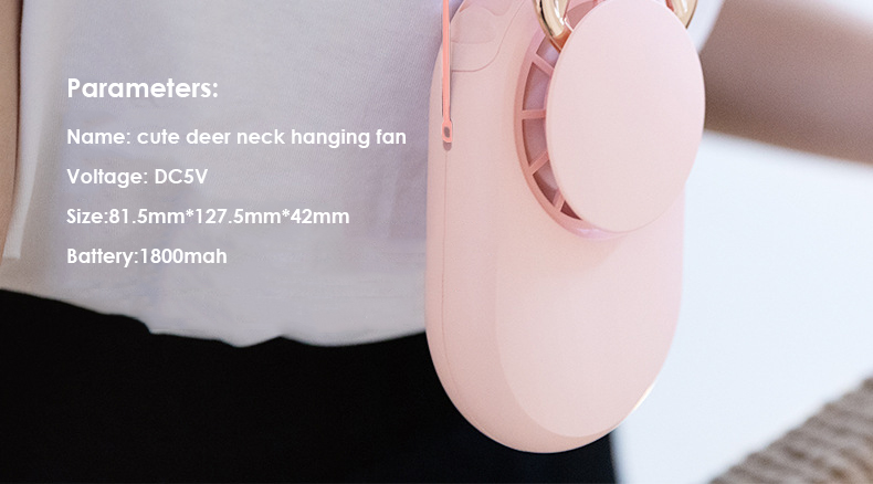 Милый рисунок оленя; Белый и розовый; 3 скорости ветра; Аккумулятор емкостью 1800 мАч, прост в использовании на открытом воздухе, используется для работы в течение 8 часов, может продолжать использовать после зарядки; Функция кронштейна, может быть размещена на рабочем столе в качестве настольного вентилятора.