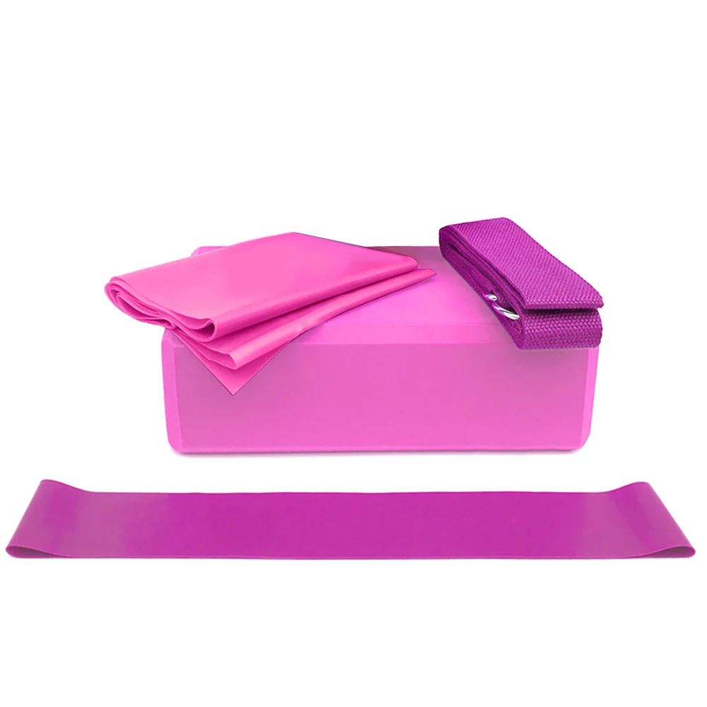 Посылка включает в себя блоки для йоги, растягивающийся ремешок, ленту для сопротивления и ленту для упражнений. Этот набор позволит вам безопасно практиковаться в собственном доме.