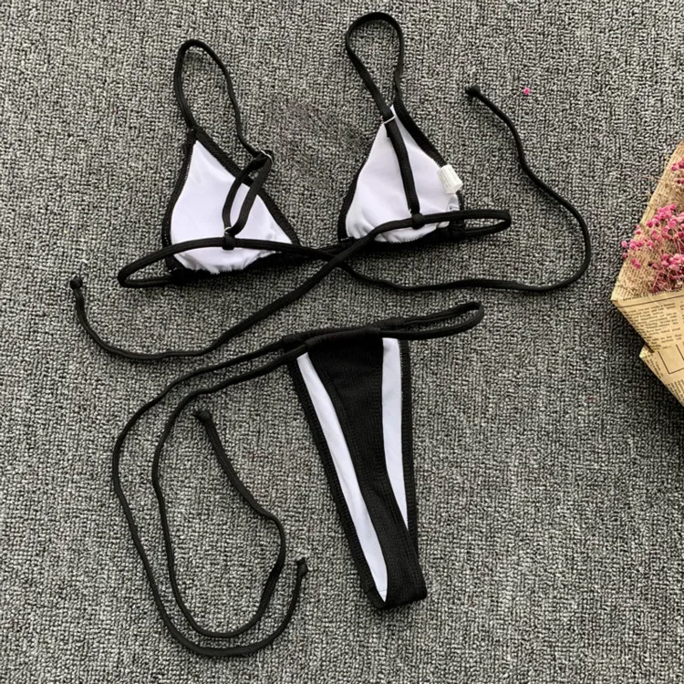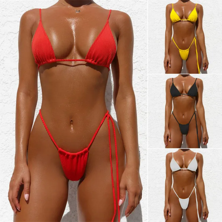 2021 сексуальный сплошной цвет бикини женский купальный костюм бандажный купальник для женщин стринги пляжный купальный костюм два предмета бикини