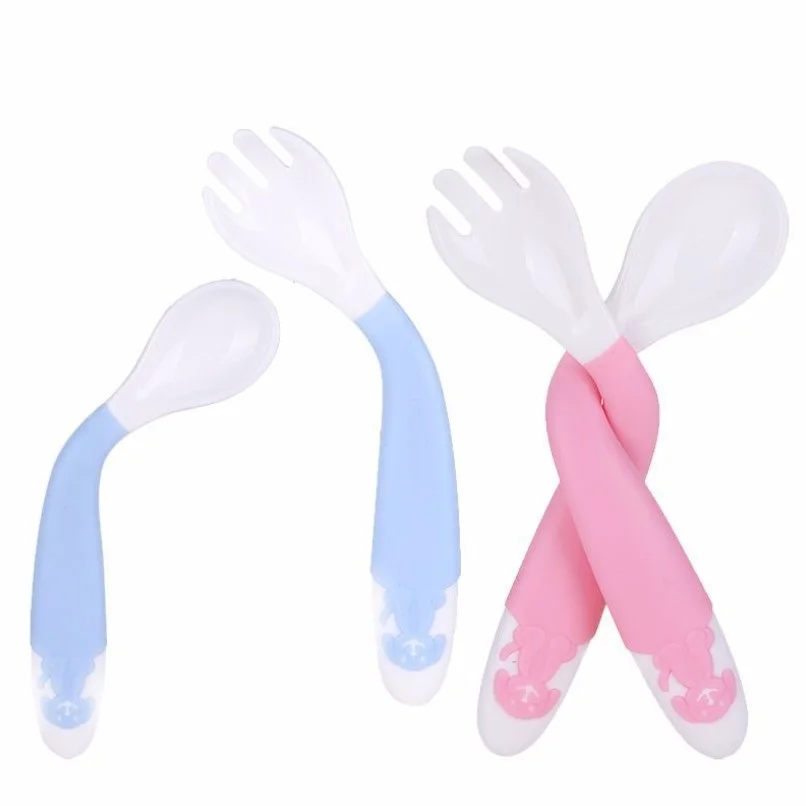 Детская гибкая посуда набор ложка и вилка для кормления детей ясельного возраста гибкие ложки народные легко сцепление термостойкие детские столовые принадлежности комплект