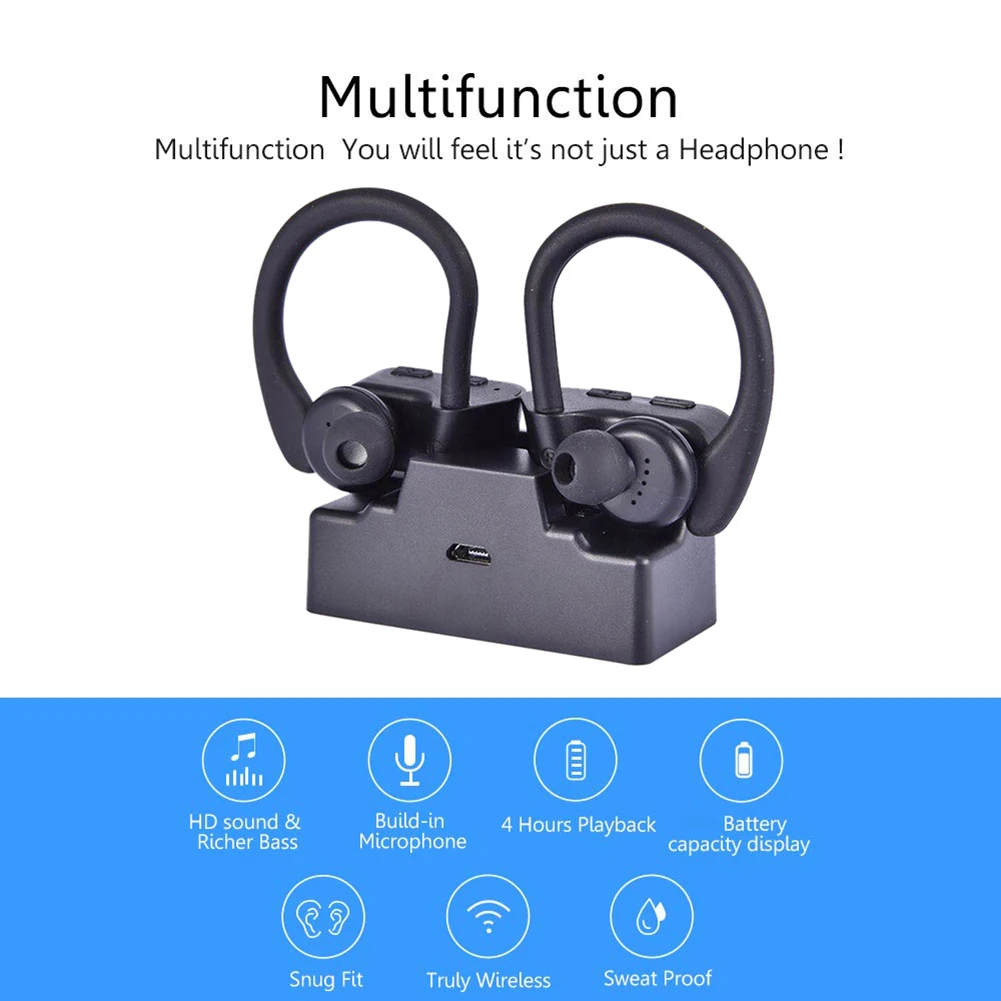 Настоящие Беспроводные наушники с сенсорным управлением, наушники-крючки, спортивные Bluetooth наушники с зарядным основанием