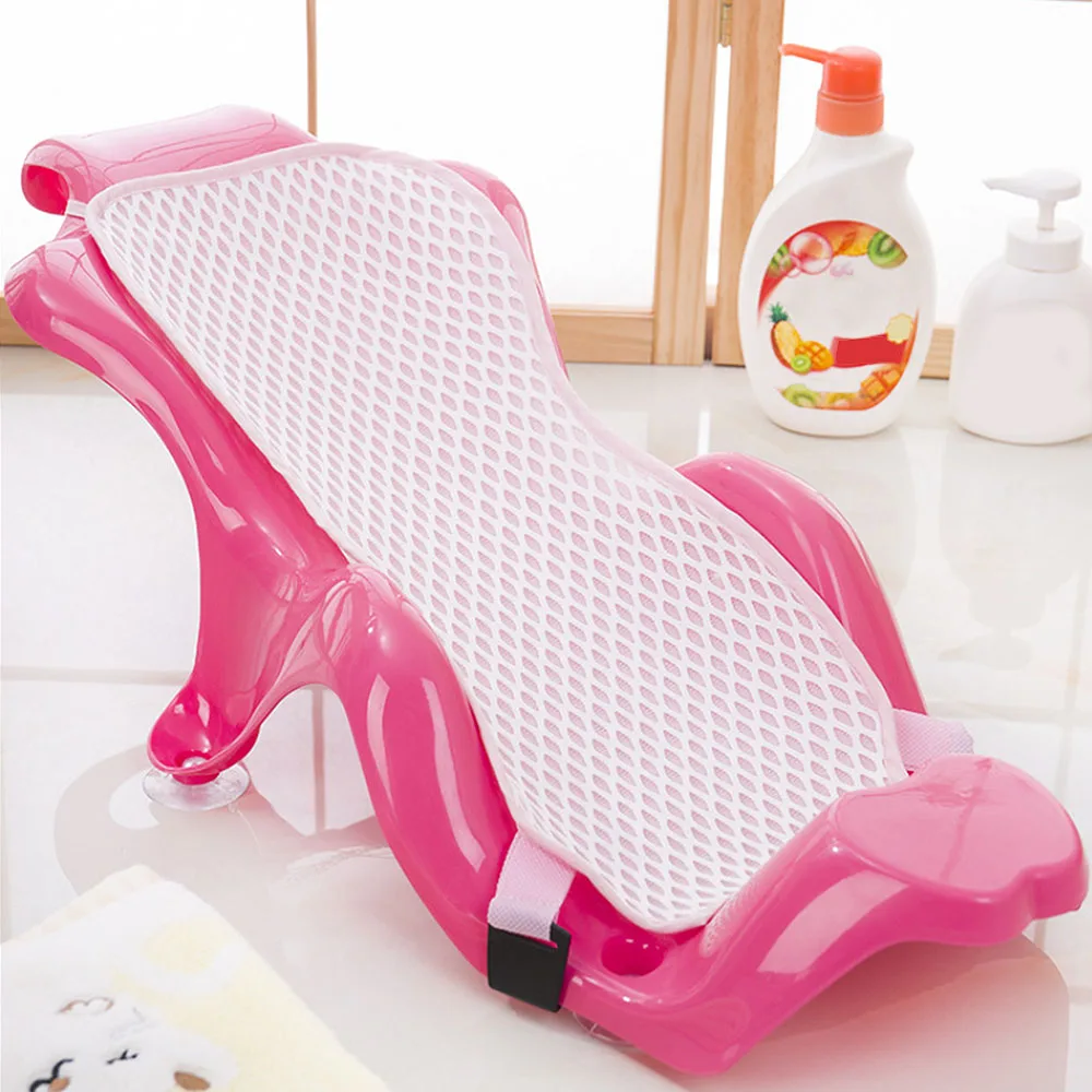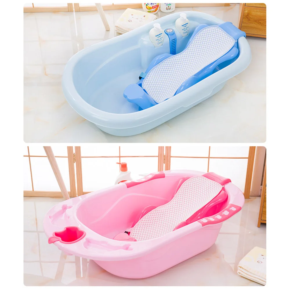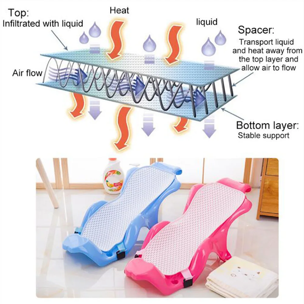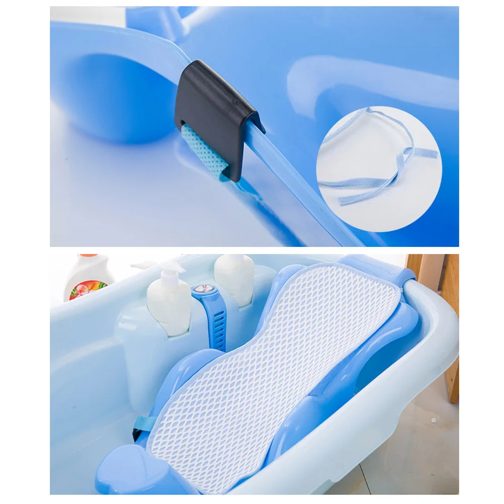 -Пряжка изогнута, прочно крепится к краю ванны, 2 пряжки, 2 шнурка, образуя гамак, эффективно предотвращая скольжение младенцев в воду.