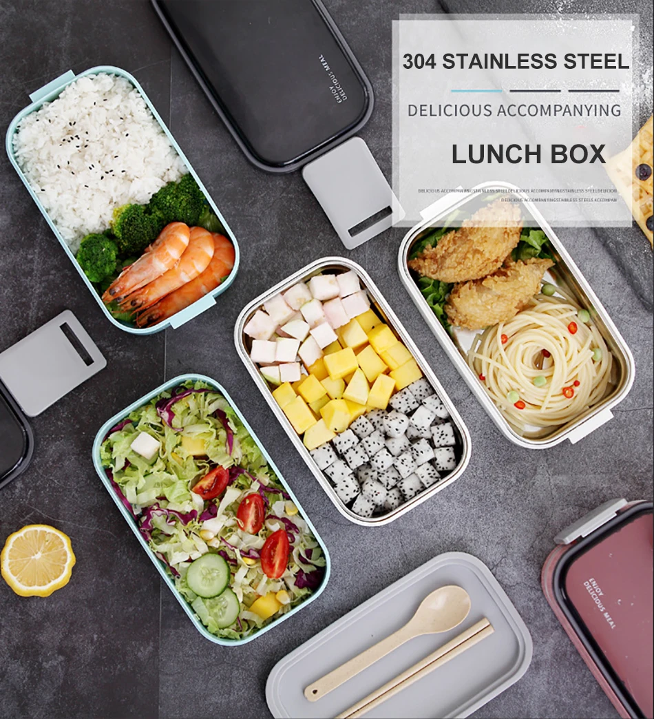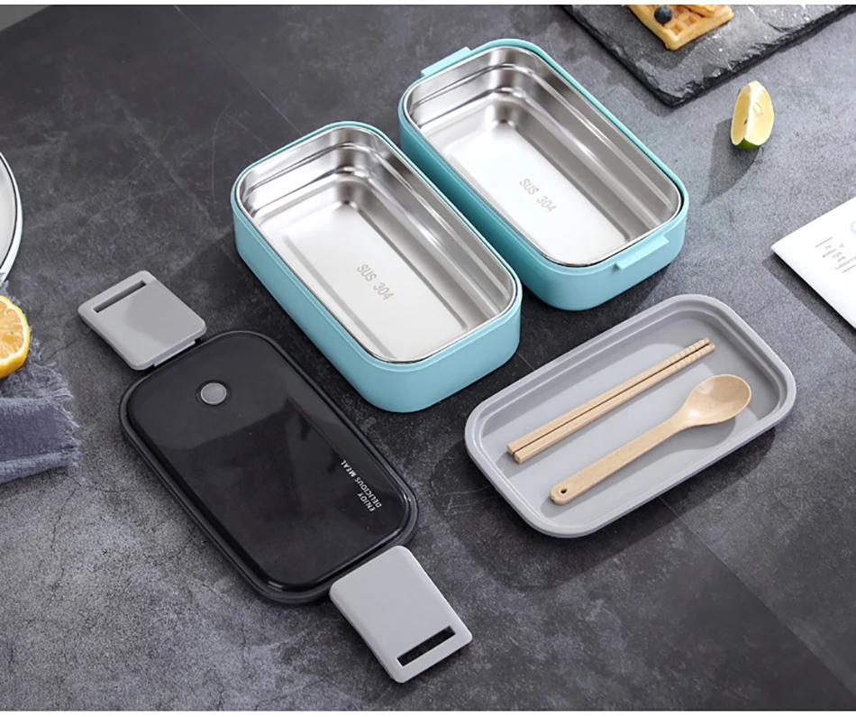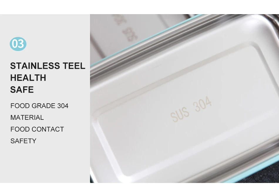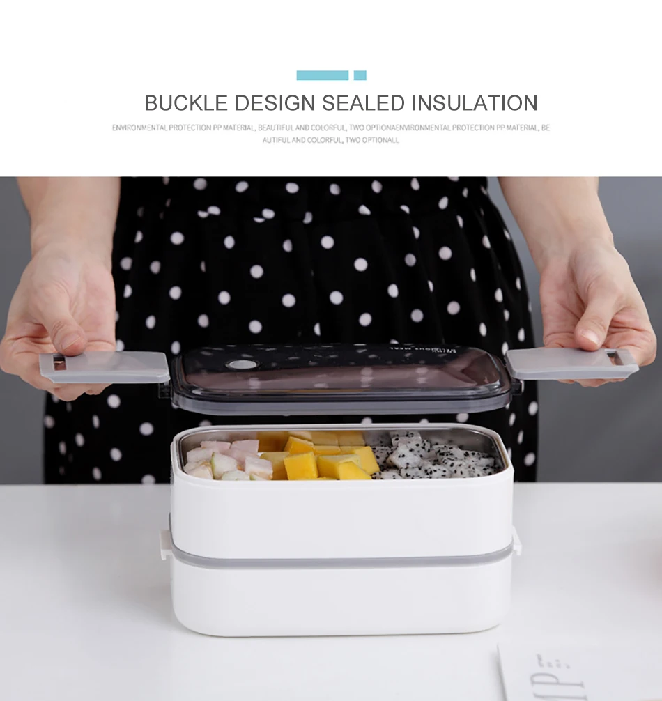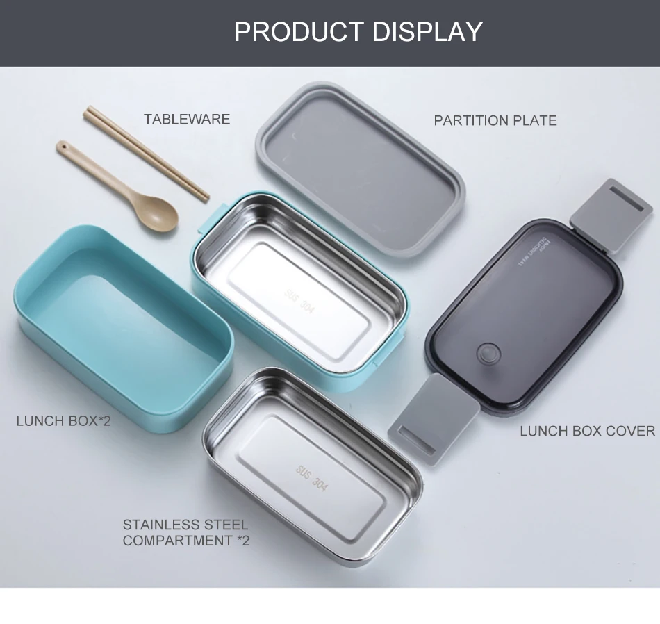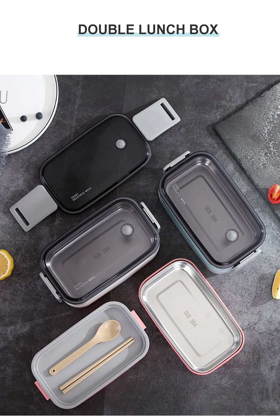 Baispo Double Lunch Box With Cutlery 304 Stainless Steel Leakproof Compartment Food Container Kids Bento Box School Kitchen