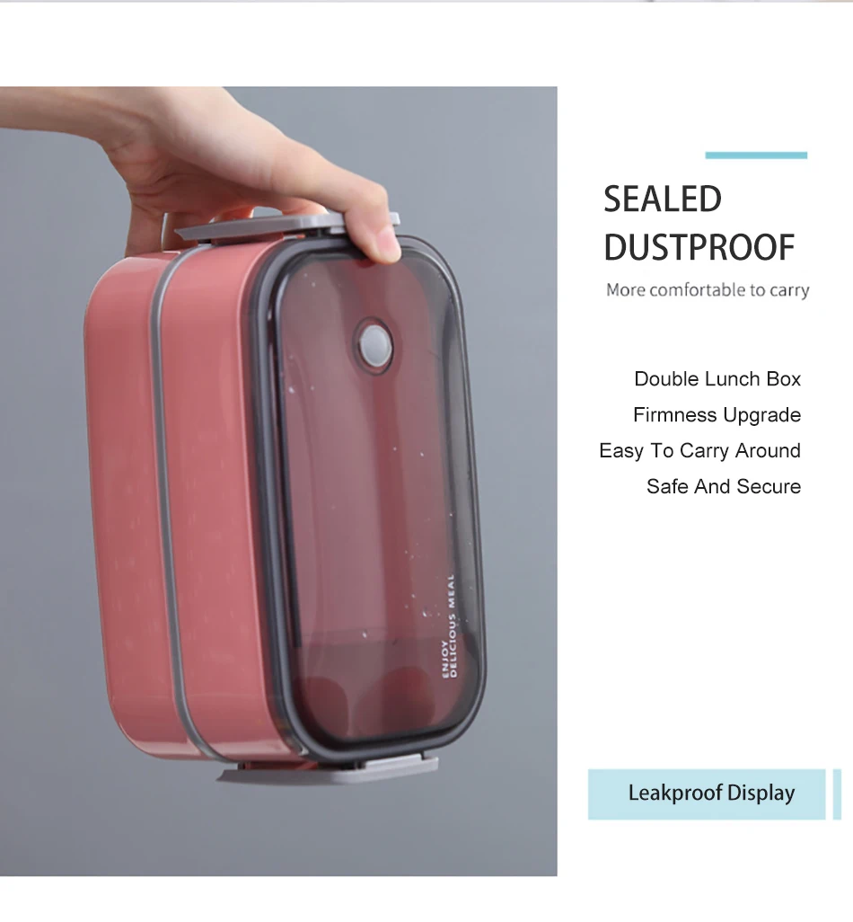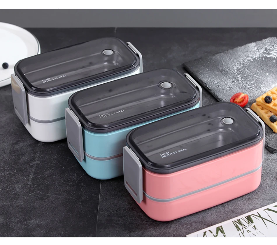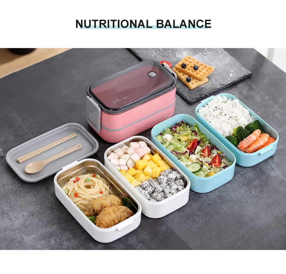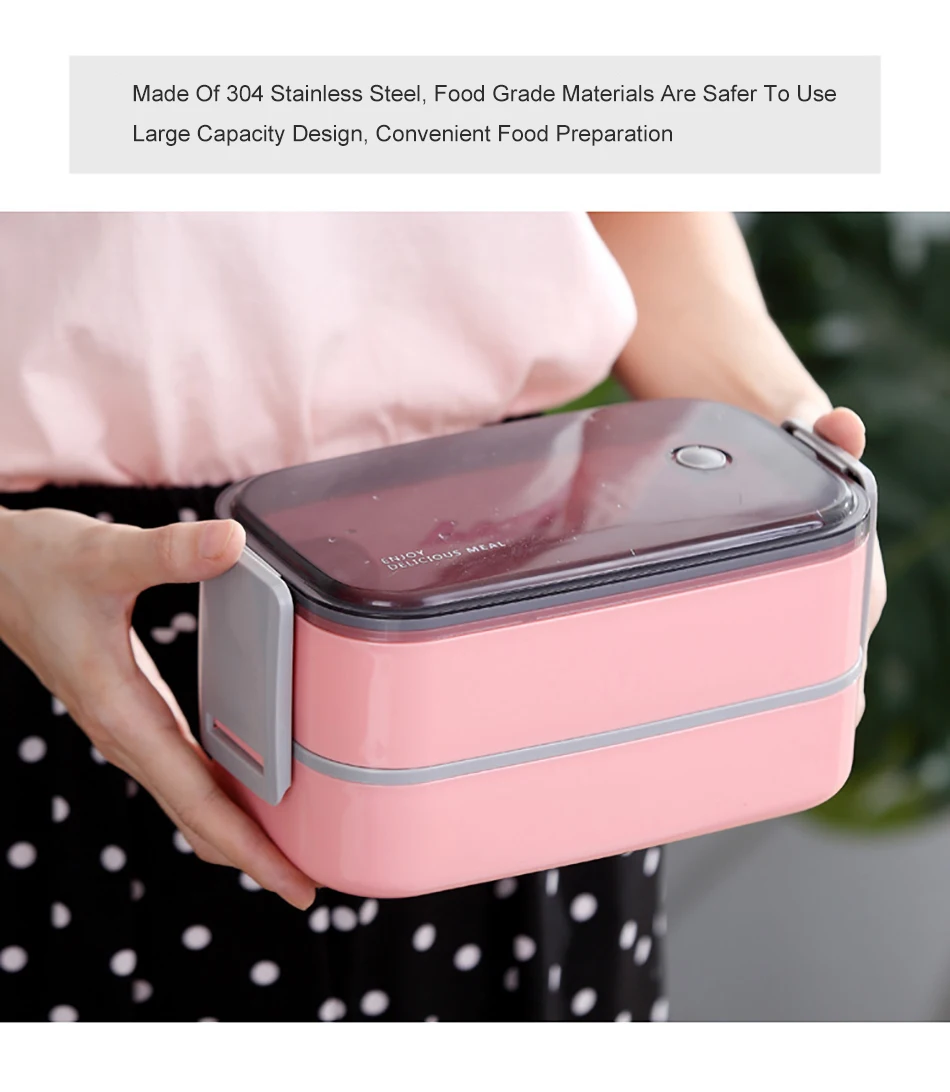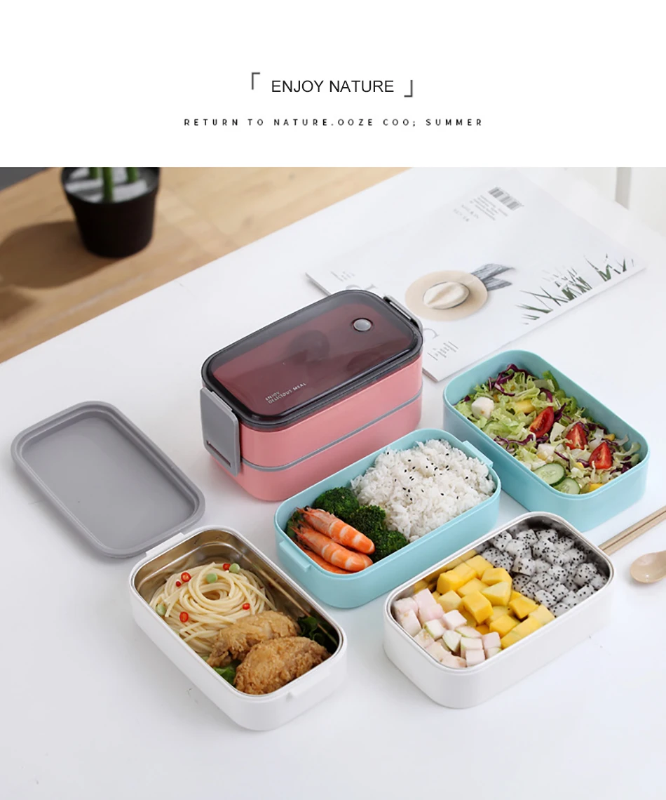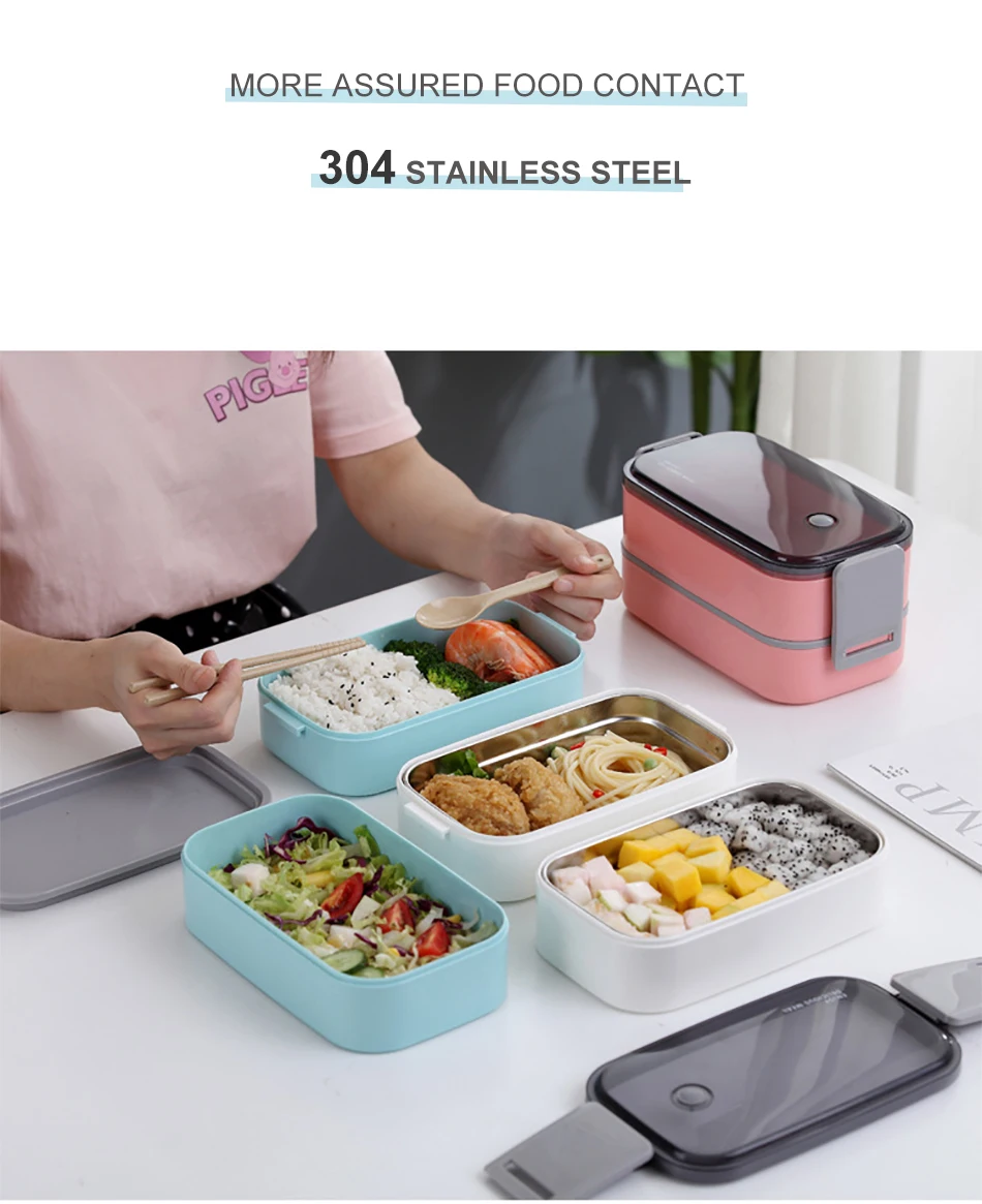 Baispo Double Lunch Box With Cutlery 304 Stainless Steel Leakproof Compartment Food Container Kids Bento Box School Kitchen