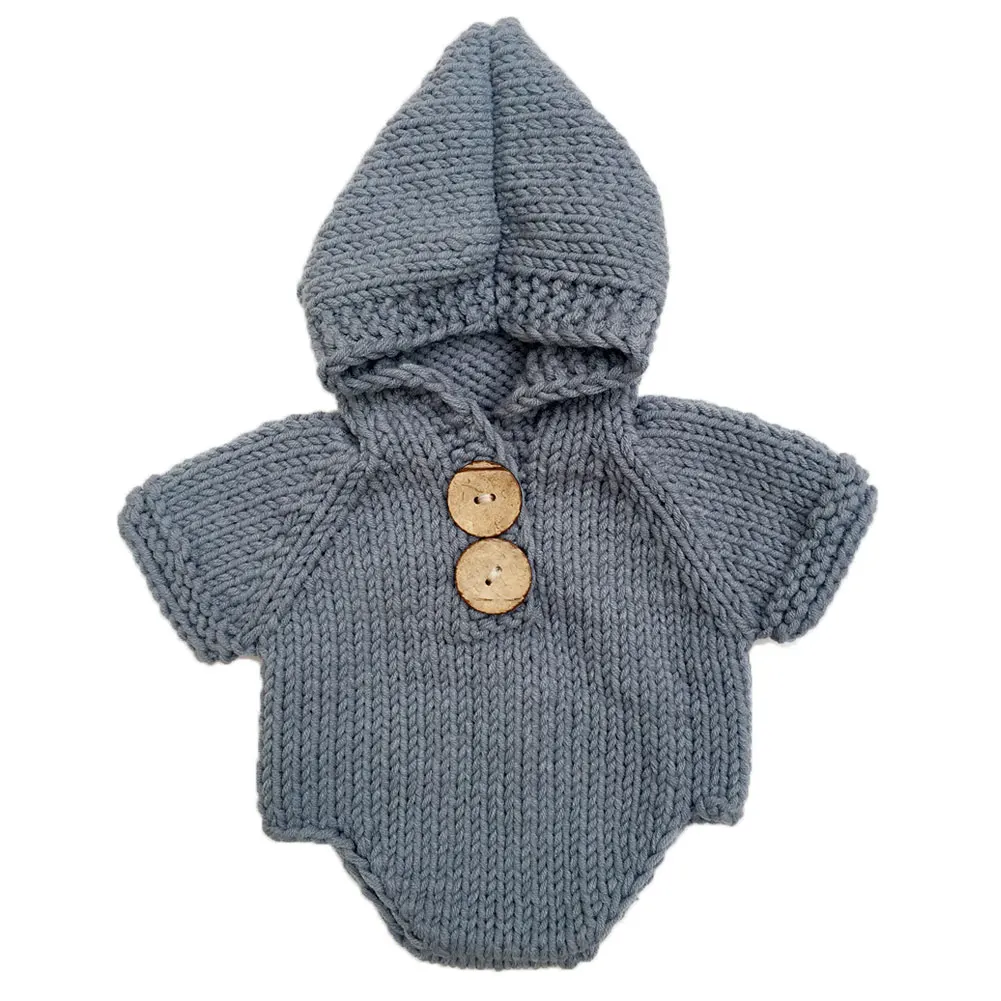 DescriptionДетский однотонный трикотажный комбинезон с капюшоном и коротким рукавом для фотосъемки новорожденных