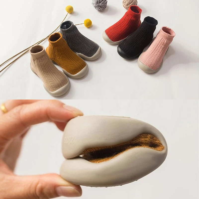 Детские носки-тапочки; Обувь на резиновой подошве; Хлопковая мягкая нескользящая подошва для новорожденных