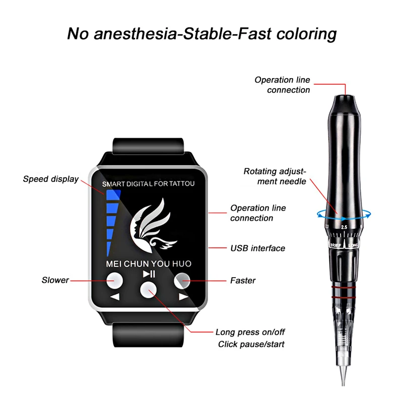 Информация о товаре: 50g контроллер часов, легкий и портативный. Беспроволочное использование, более 3 часов непрерывной работы после полной зарядки аккумулятора. Регулируемая и видимая длина иглы. Портативный и эргономичный дизайн предотвращает усталость. Высокая скорость и низкие децибелы: специальная структура передачи обеспечивает идеальное сочетание ультра тихой и высокой скорости. Легкий и удобный: можно изменить скорость с часов при татуировке. Лямки можно регулировать. Описание продукта: Особенности: Без конопли иглы Легкий: алюминиевый каркас, прочный и легкий. Эргономичный дизайн, удобный: изготовлен из высокопрочного алюминиевого сплава, нескользящий. Низкий уровень шума: используется эффективная технология отключения звука для снижения шума. Позвольте вашим клиентам сотрудничать с вами, чтобы закончить татуировку в расслабленной среде. Электронный тест, стабильная работа: усовершенствованная электронная техника управления. Значительно обеспечивает консистенцию источников питания, напряжений, токов и сил, независимо от того, под каким напряжением, может поддерживать стабильную прочность и высоту игл. 5 уровней Скорость: 45000R/мин 40000R/мин 35000R/мин 30000R/мин 25000R/мин Посылка включает в себя: 1 х интеллектуальные часы 1 X ручка 1 х USB соединительная линия Адаптер (1 шт.) 1X115 см Управление линии