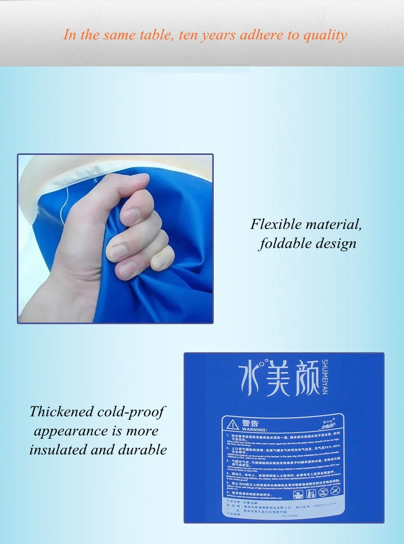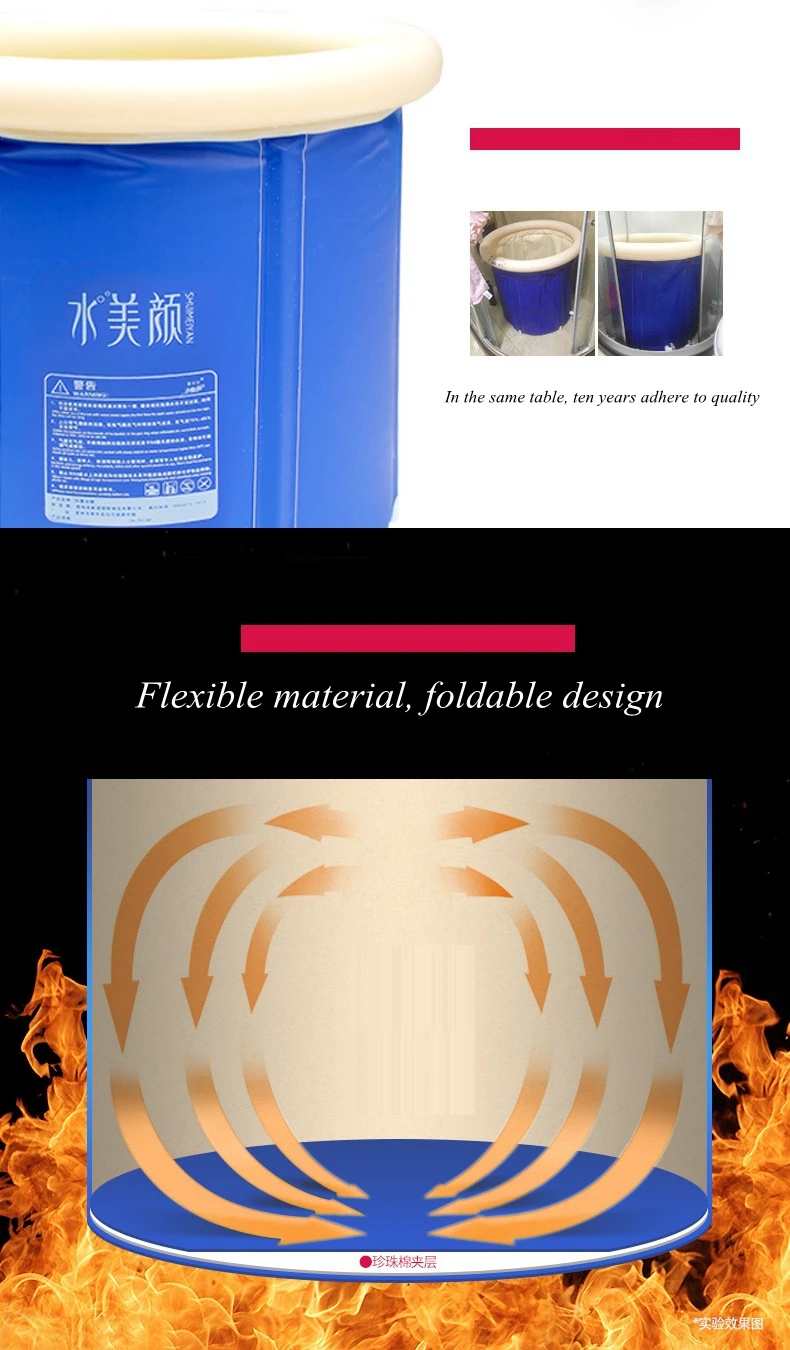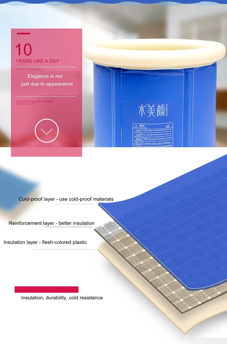1. Низ жемчуга стеганый, против внешних помех, больше изоляции. 2. Таблица как одна, десять лет придерживается качества. 3. Используйте гибкий материал, складной дизайн. 4. Утолщенный морозостойкий внешний вид более утеплен и прочен. 5. Двухслойный дренаж, быстрый дренаж, переключатель крана, более удобный и быстрый. 6. Легко установить, складной, легко хранить, небольшой размер, можно использовать в различных сценах. * Заметки: Правильное использование: При заполнении воды, пожалуйста, не кладите трубу непосредственно на ванну на воздушный шар. Если вы не можете этого избежать, пожалуйста, Положите полотенце на воздушный шар, а затем поместите трубку для душа на полотенце, чтобы предотвратить прохождение трубки для душа. Высокое, поврежденное воздушное кольцо.