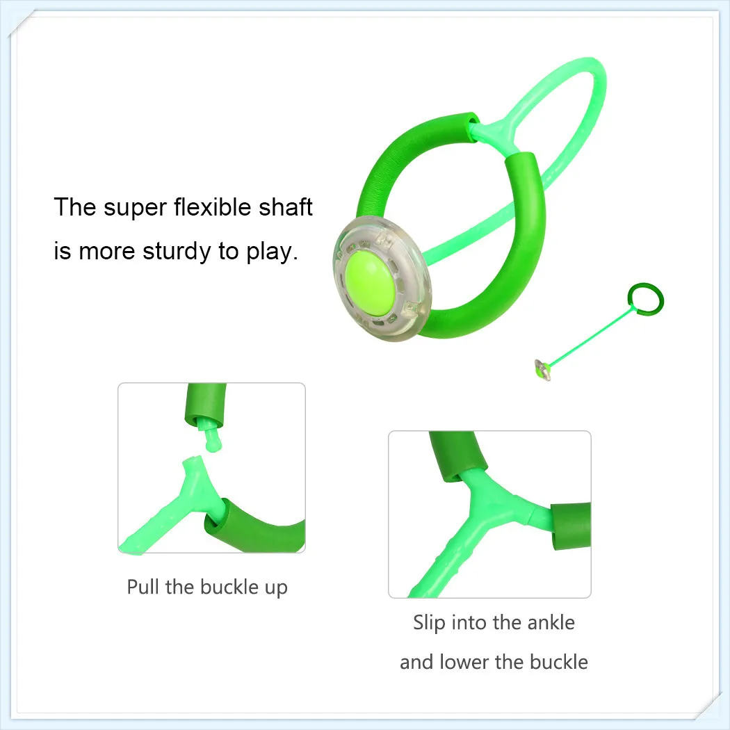 Этот скакающий шар натягивается на одну ногу, в то время как другая нога нагибается на шар, прикрепленный к веревочке, затем качается с вашей ногой, чтобы получить игрушка движется, и прыгать через шар и шнур.