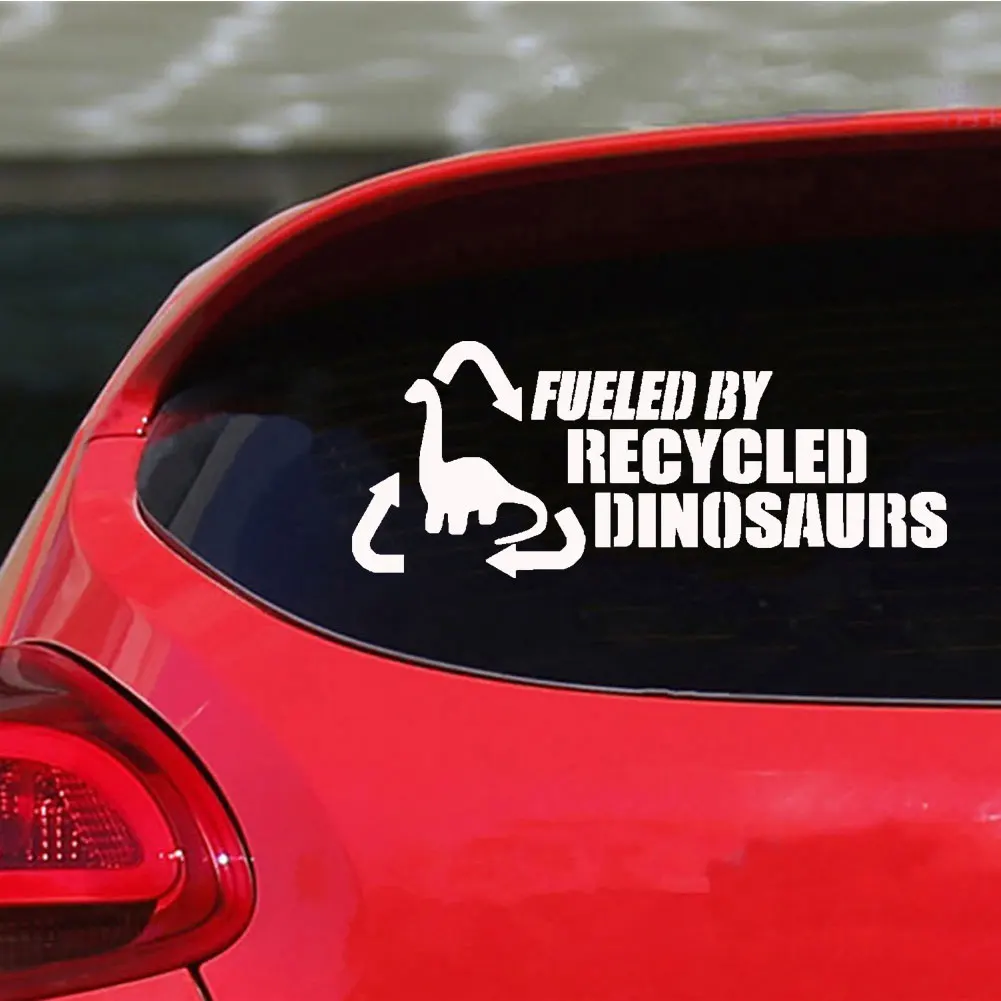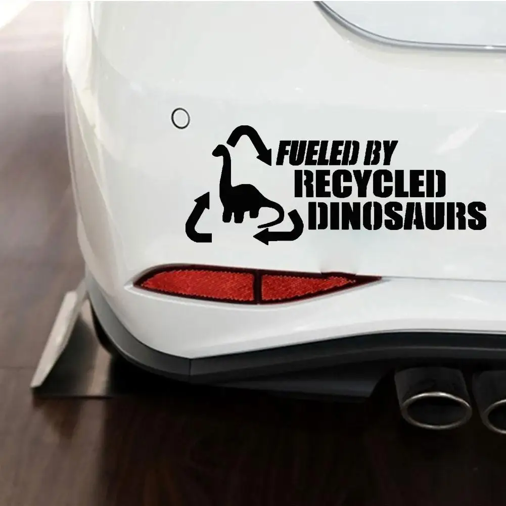 "Подпитывается переработанными динозаврами" дизайн автомобиля стикер, забавный и уникальный.