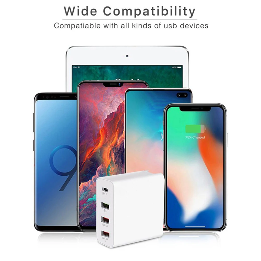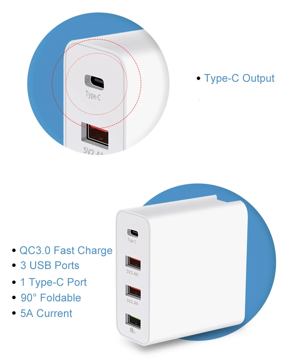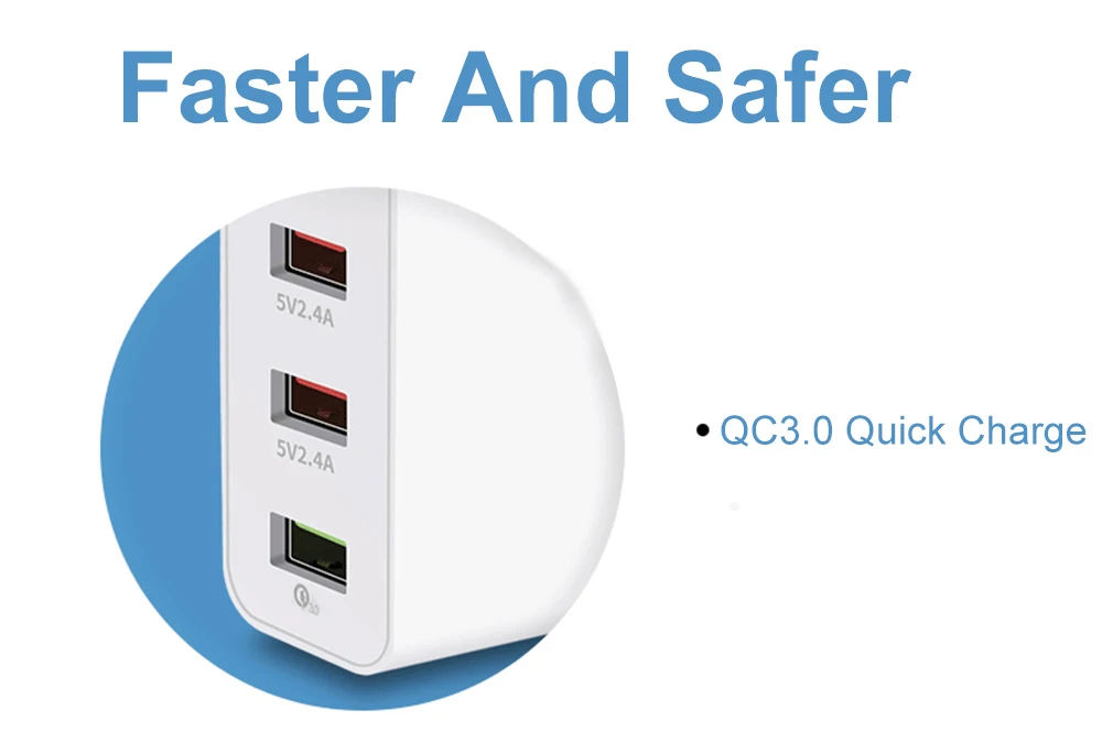 1. Портативное зарядное устройство для дома, офиса, путешествий и других помещений. 2. 1 Тип порт Type-c и 3 портами USB (Быстрая зарядка 3,0 и зарядное устройство с 2 usb портами 5V/2,4 А (макс.), Зарядка 4 устройства одновременно. 3. 9 защита защищает вас и ваши устройства. 4. Совместим со всеми смартфонами, такими как iPhone для iPad для Samsung для Xiaomi для Huawei для OPPO для OnePlus для Sony для Google и планшетных ПК камера MP3 MP4 плеер для PSP с usb-портом или портом Type-c. 5. Умный соответствующий ток. Встроенный интеллектуальный чип, в соответствии с различными устройствами, соответствующий требуемому выходу, быстрая зарядка и не повреждает аккумулятор.