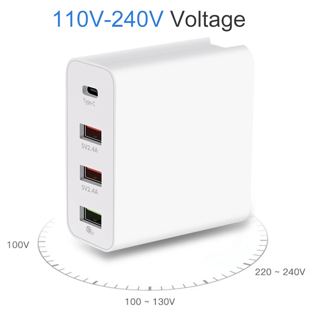4 USB порта, мульти, быстрая зарядка, Тип C, USB зарядное устройство для Samsung, для iPhone, Huawei, планшета, QC 3,0, быстрое настенное зарядное устройство, США, ЕС, Великобритания, AU, адаптер