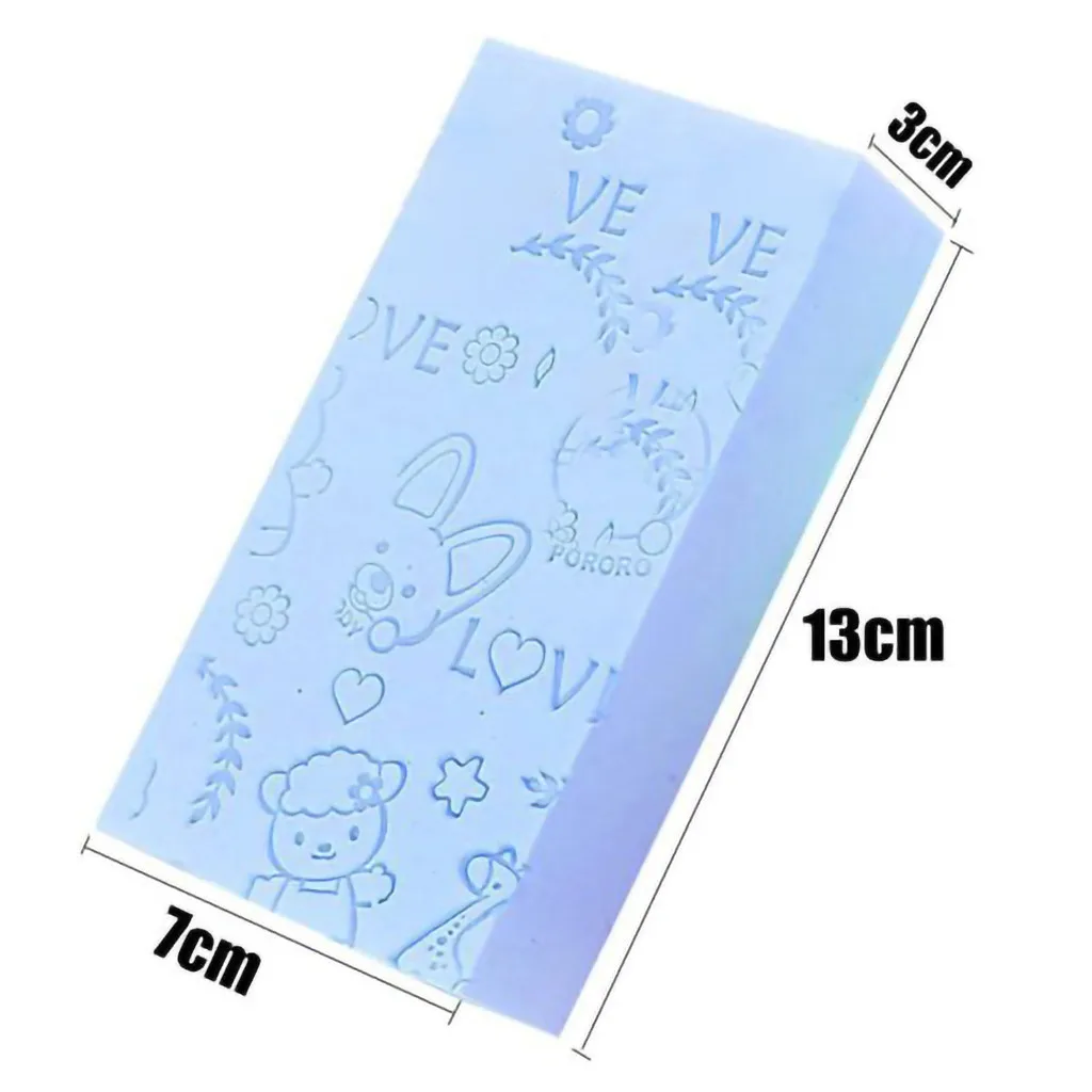 Изготовлен из губчатый материал, удобный и мягкий. Он не царапает нежную кожу вашего ребенка, когда вы используете ее. Это обязательный предмет для вашей ванной комнаты.