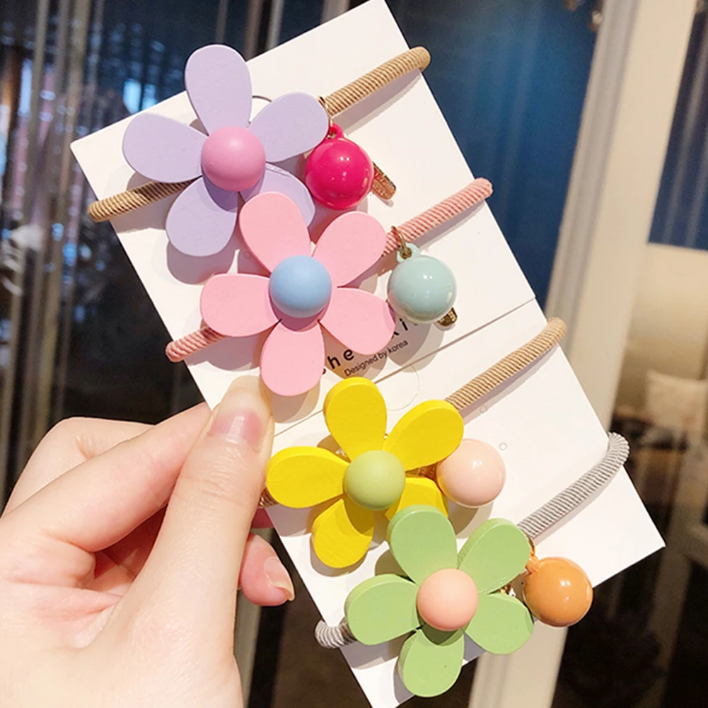 Карамельный цвет цветок мяч завязанные волосы галстук кольцо веревка милый женский Хвостик Держатель
