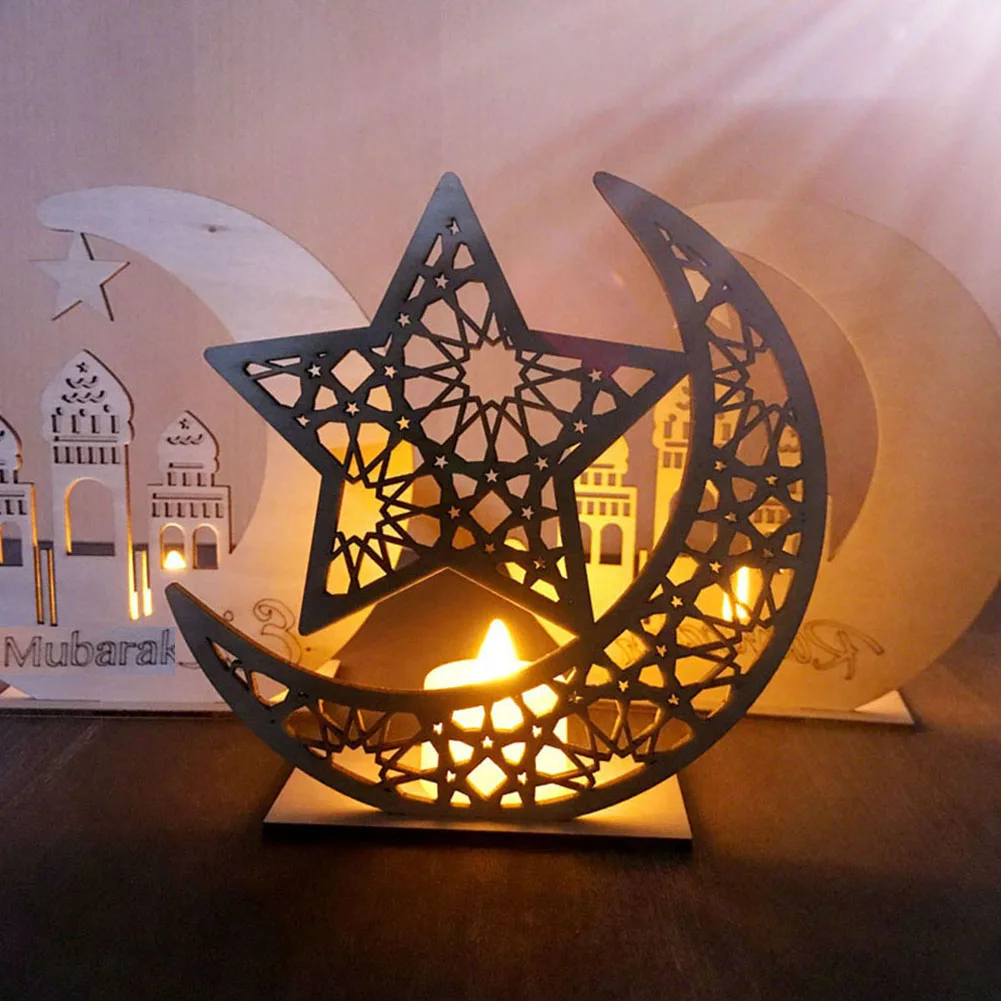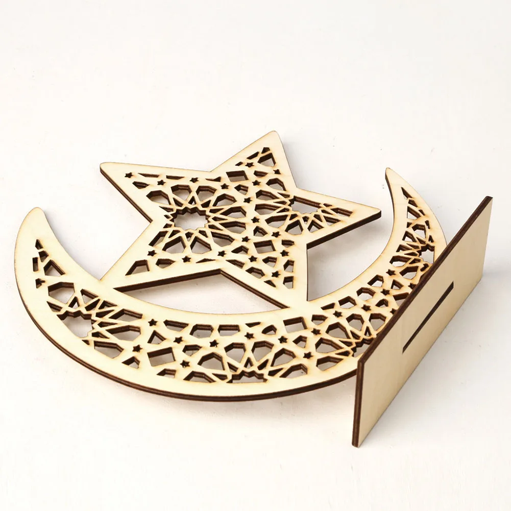 DIY деревянный Рамадан Edi Mubarak форма лунной звезды ислам доска домашнее настольное украшение