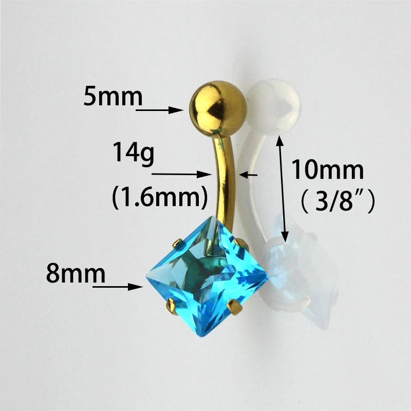 1 шт. 14 г коготь квадратный Циркон пупок кольцо циркон пупок ювелирные изделия из нержавеющей стали пирсинг ювелирные изделия для тела
