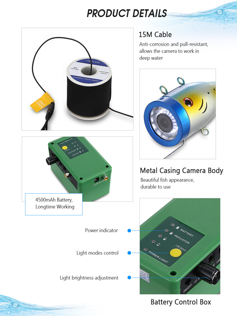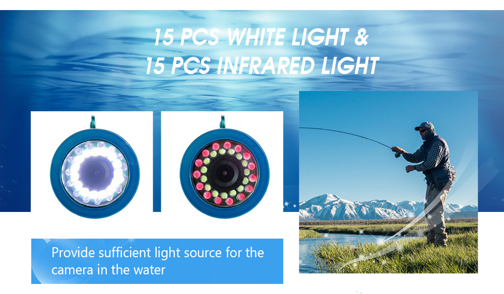 Это система подводной рыболовной камеры. Он не только имеет большой цветной экран, но также имеет камеру с HD 1000 телевизионными линиями. 15 белых светодиодов, 15 инфракрасных ламп высокой интенсивности. Он может выполнять просмотр и мониторинг в реальном времени. Просто наслаждайтесь подводным миром.