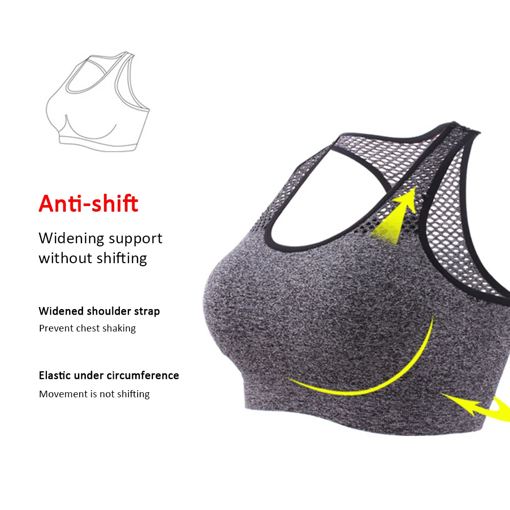 Спортивный бюстгальтер для йоги, Сетчатое дышащее фитнес-противоударное нижнее белье пуш-ап для бега в тренажерном зале