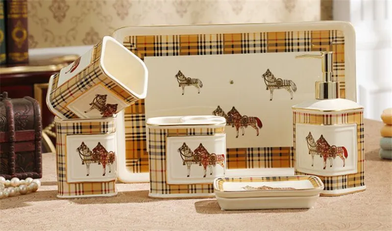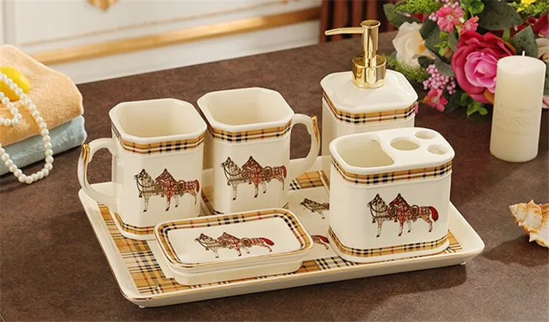 Набор аксессуаров для ванной комнаты, керамический диспенсер для мыла, держатель для зубной щетки, чашка для полоскания, мыльница с подносом, свадебные подарки, Товары для ванной