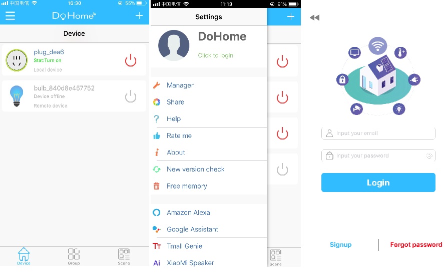 Для пользователя HomeKit, как использовать смарт-динамик, например, Alexa, google assistant, Tmall или Xiaomi? Отсканируйте qr-код в следующем приложении и загрузите приложение DoHome.
