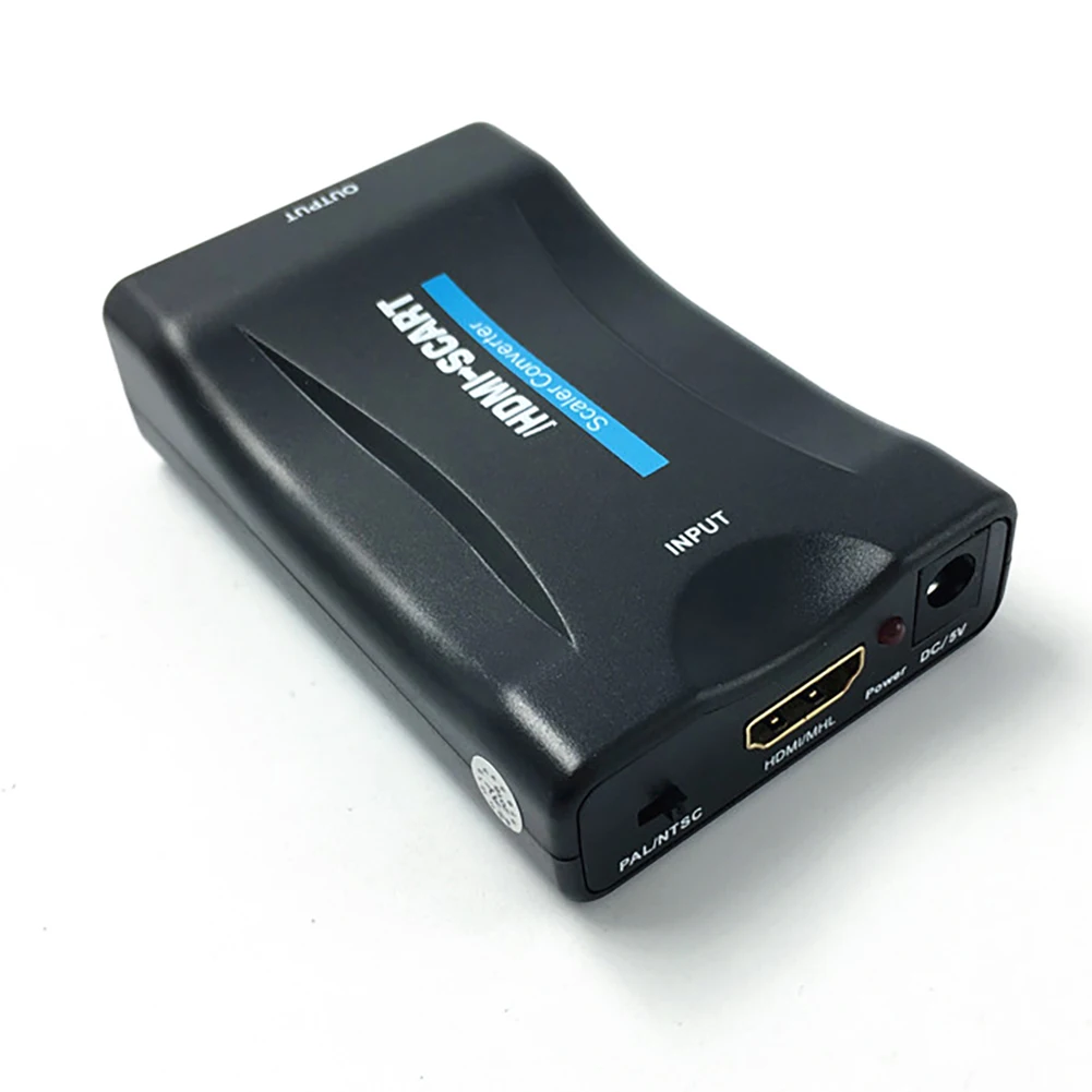 -Мини-hdmi в SCART конвертер, который преобразует цифровой HDMI видео и аудио сигнал в композитный видео сигнал и FL / FR стерео аудио сигнал, в то время как Поддержка DVI системы sideline сигналов.
