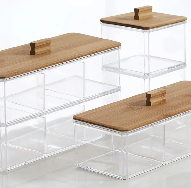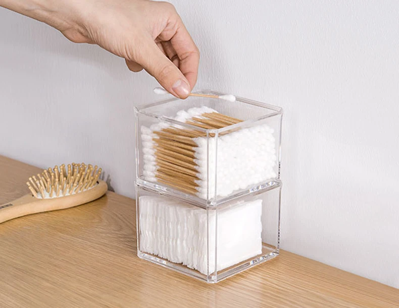 Акриловый Органайзер для макияжа, прозрачный хлопковый тампон, коробка для хранения, переносной чехол для хранения, контейнер для макияжа, акриловый контейнер