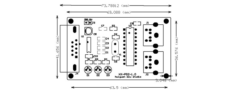 PS2 клавиатура данных к последовательной RS232 доска данных основные параметры Размер: 69 мм X 42 мм Толщина листа: 1,6 Цвет: красный Одночиповая Модель: STC11F04 или AT89C2051 Последовательная передача данных Последовательная передача: 19200 Порт PS2: 2, один для нормального использования, другой для самостоятельного развития или резервного копирования.