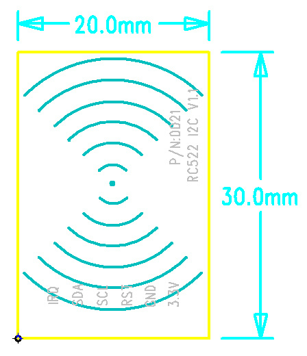 The RC522 module is a Mifare card reader module based on NXP's NXP RF base station chip. The module operates at 13.56MHz and is ISO14443A compliant. It supports Mifare1 S50, Mifare1 S70, Mifare Light, Mifare UltraLight, and Mifare Pro. The module is easy to use, highly reliable, and small in size, which helps customers to easily and quickly apply non-contact cards to the system. 3. Interface pin definition and module parameters Working frequency 13.56MHz Working voltage 2.5~3.6V Operating current Using program routines to find card current 20mA (3.3V supply) Card reading distance 0~50mm (M1) Support Type MIFIRE1 S50 S70 UltraLight Pro Working temperature -25~+85 degrees Label IO type Function description 3.3V power supply GND power supply RST input reset SCL input I2C port clock SDA input and output I2C port data IRQ output interrupt signal 4. Module size