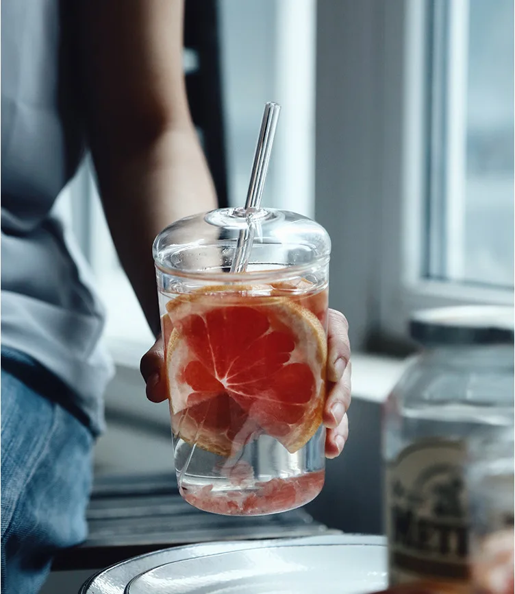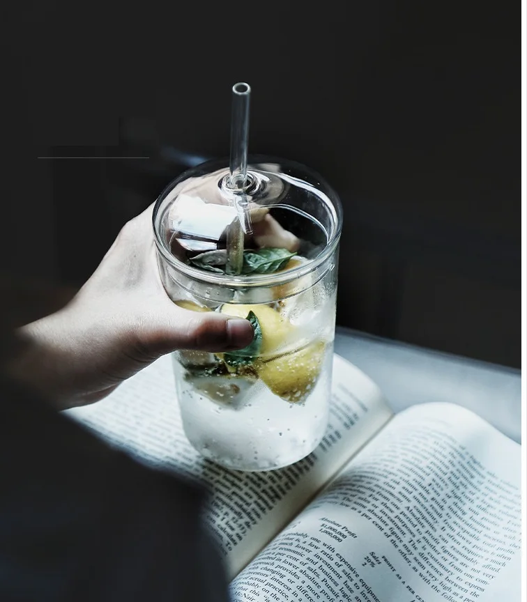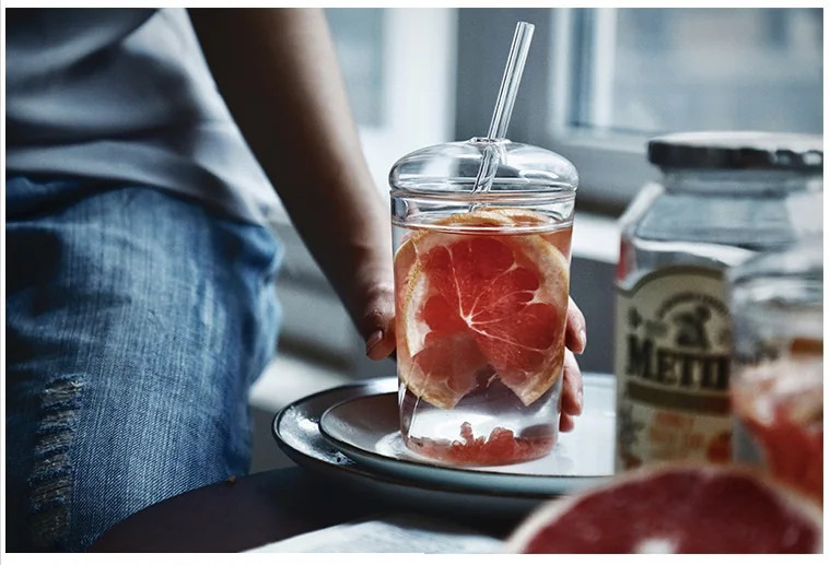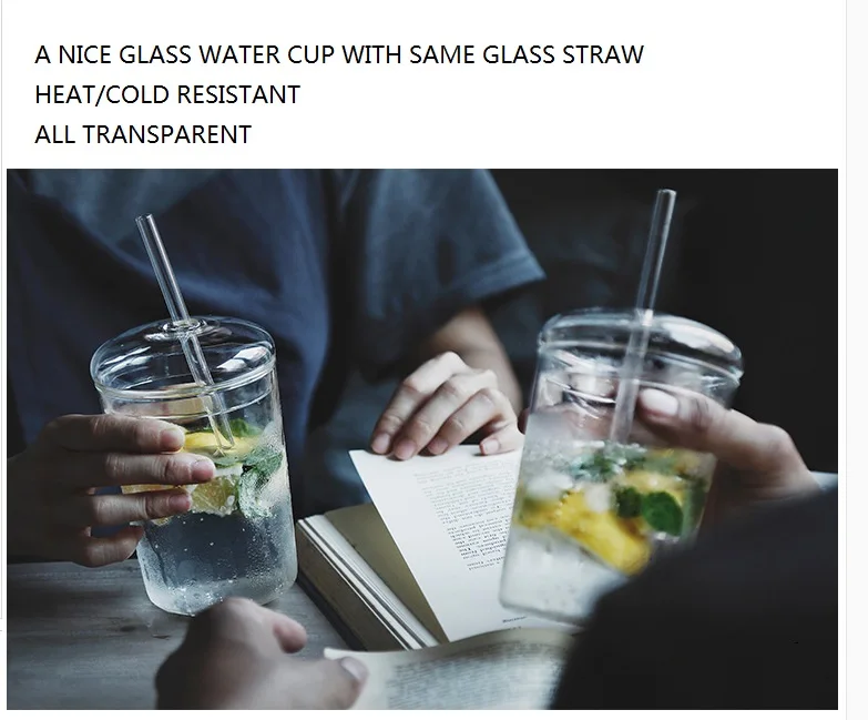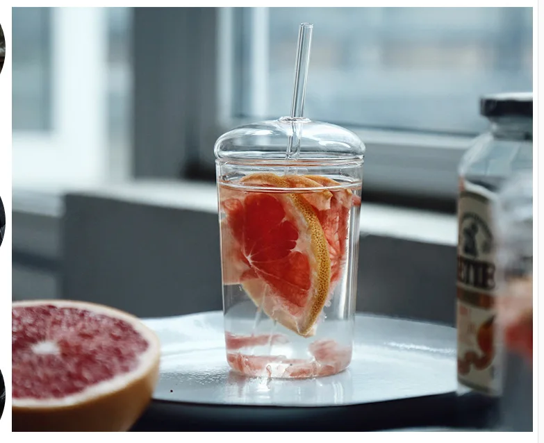400ml-500mlCreative прозрачная стеклянная чашка для воды с крышкой и стеклянной соломой