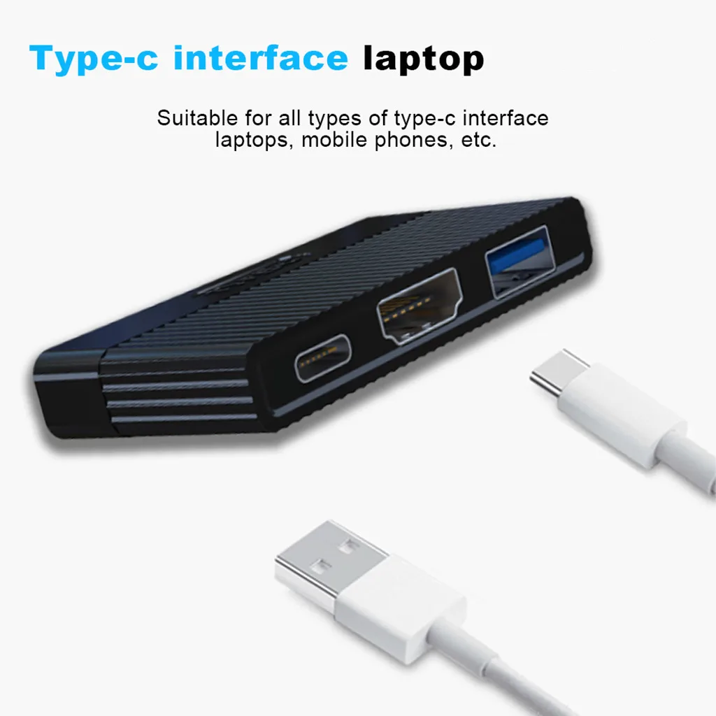 Multi-function Type c expansion dock three-in-one, multi-function connector set. Can connect multi-device 4kx2k HD output HDMI interface, support 60w PD intelligent fast charge USB3.0 interface. Type c interface notebook exclusive, suitable for any Type c interface laptop, mobile phone and other equipment. The mini is easy to carry and can be used anytime, anywhere.parameter