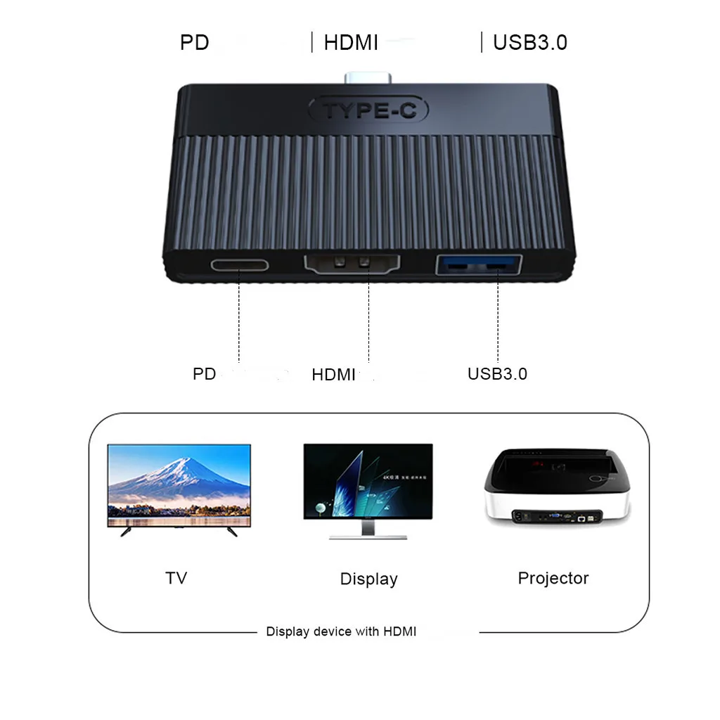 3-in-1 Type c to HDMI PD USB3.0 adapter Single USB c to 4k HDMI converter