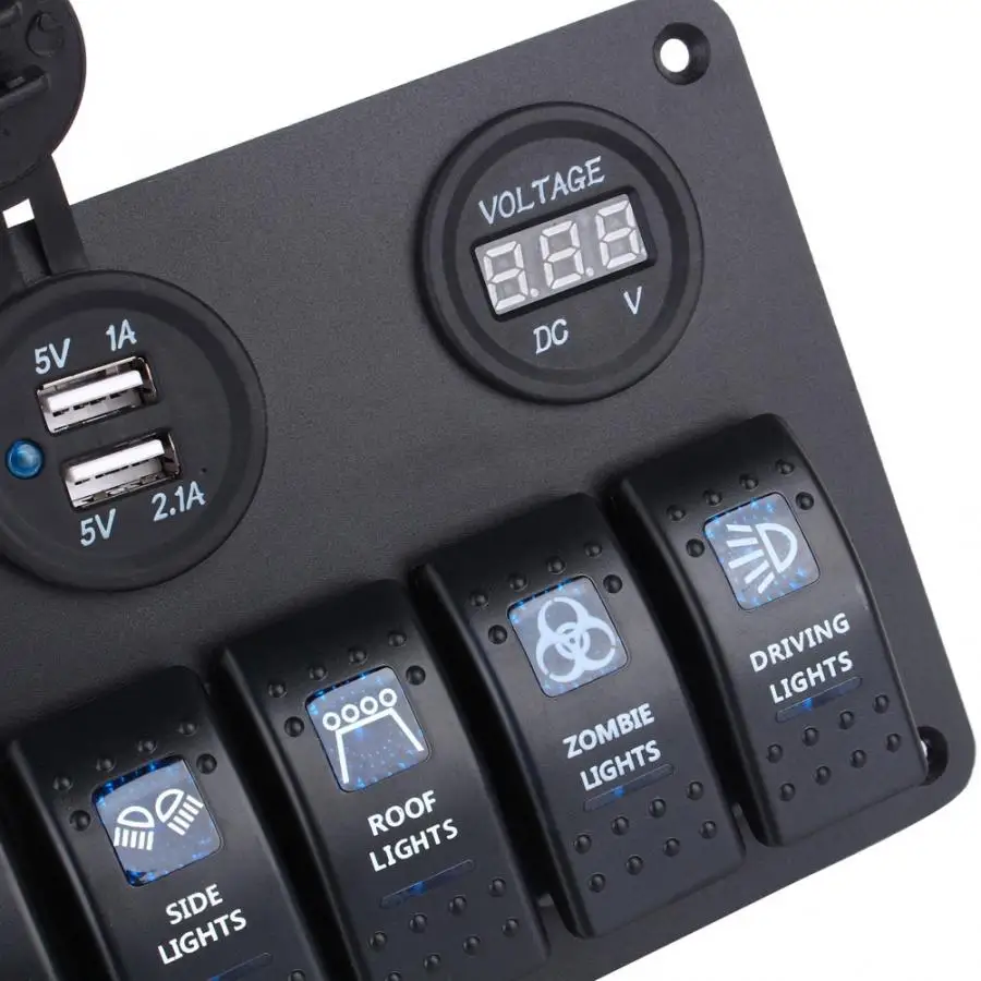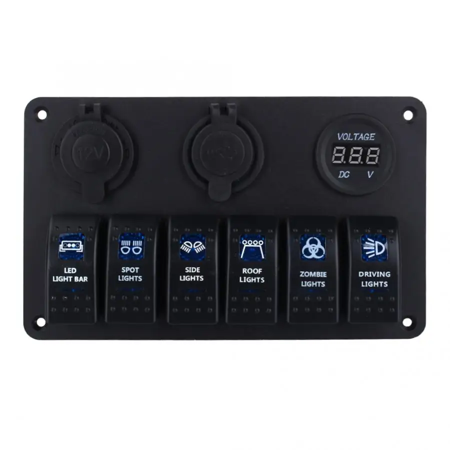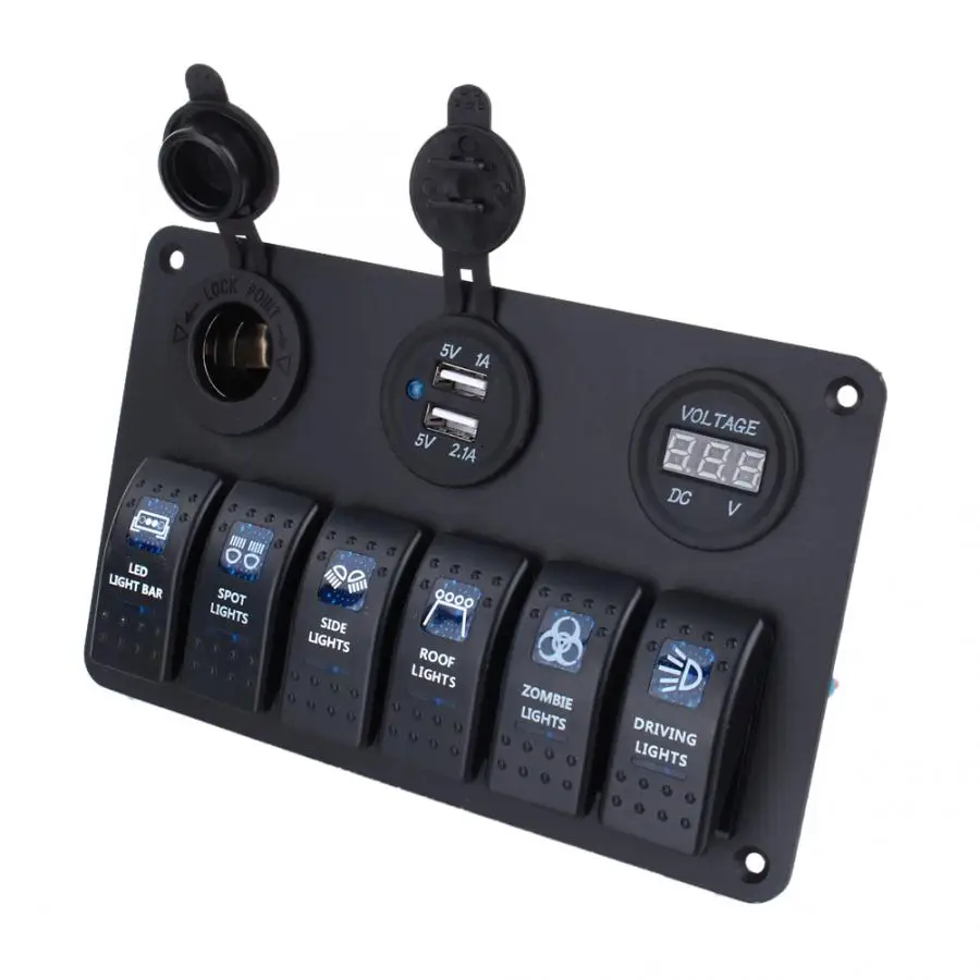 6 способ светодиодный автомобиль Лодка кулисный переключатель Панель + USB розетка + прикуриватель + Вольтметр