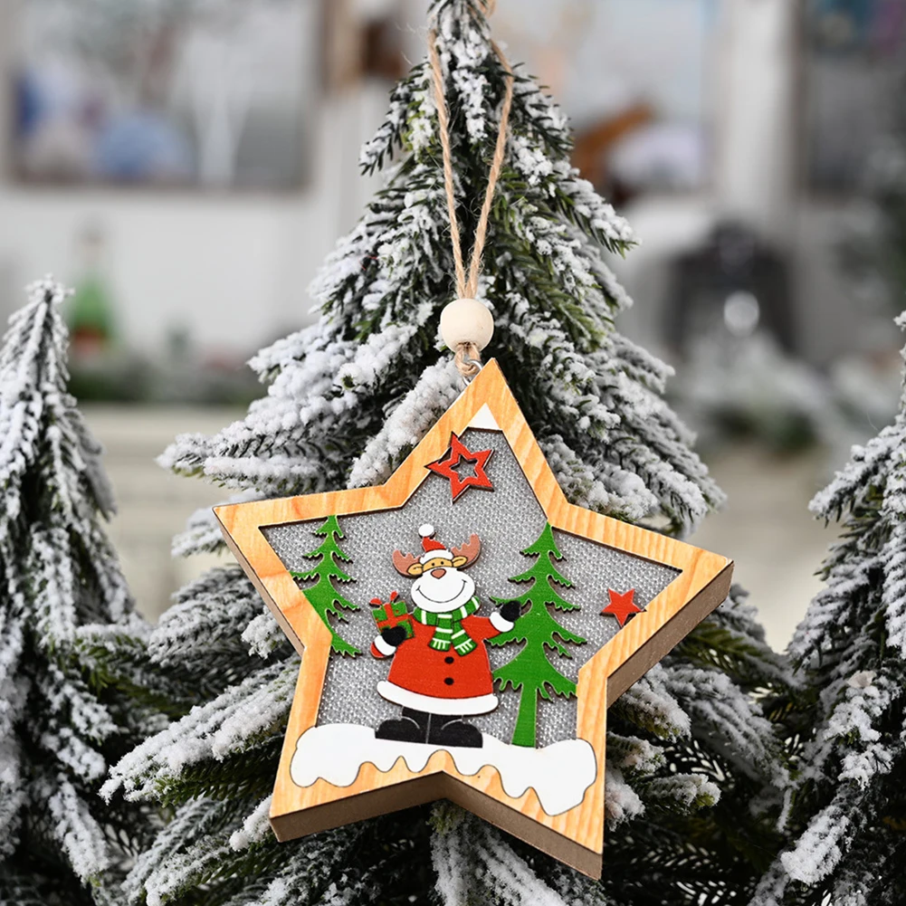 Рождественский Санта и олень Снеговик светодиодный светильник в форме звезды подвесной домашний кулон в виде дерева Декор