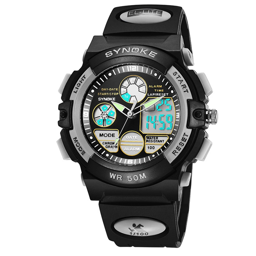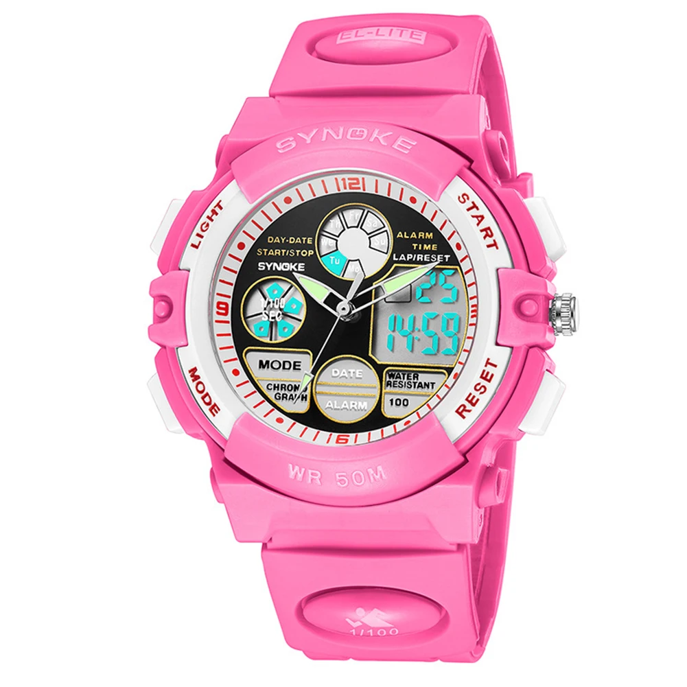 Водонепроницаемые Цифровые Аналоговые электронные часы для движения с двойным датой и будильником, светящиеся Детские наручные часы для девочек, Новинка для мальчиков и девочек
