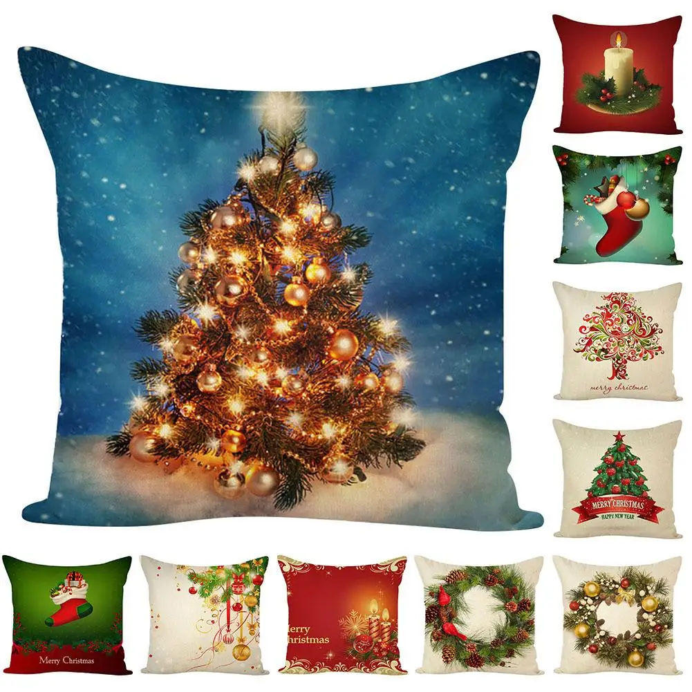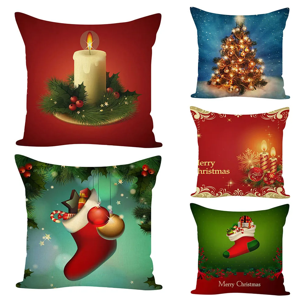 Новогодняя Рождественская Подушка Чехол 45*45 наволочки для декоративных подушек чехол s декоративные подушки Рождественская елка/носок/Свеча Наволочки чехол s наволочка