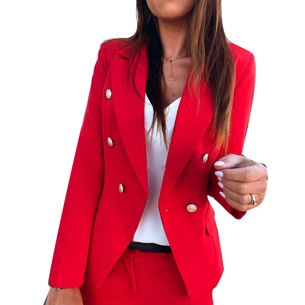 Модная женская однотонная куртка с отложным воротником и длинным рукавом на пуговицах, пиджак, верхняя одежда