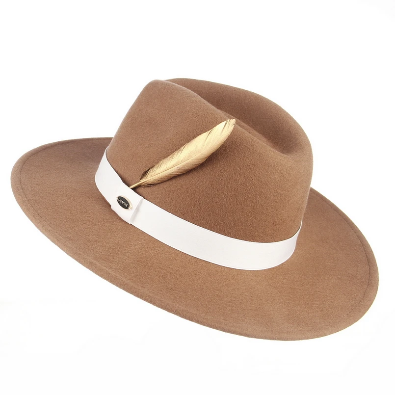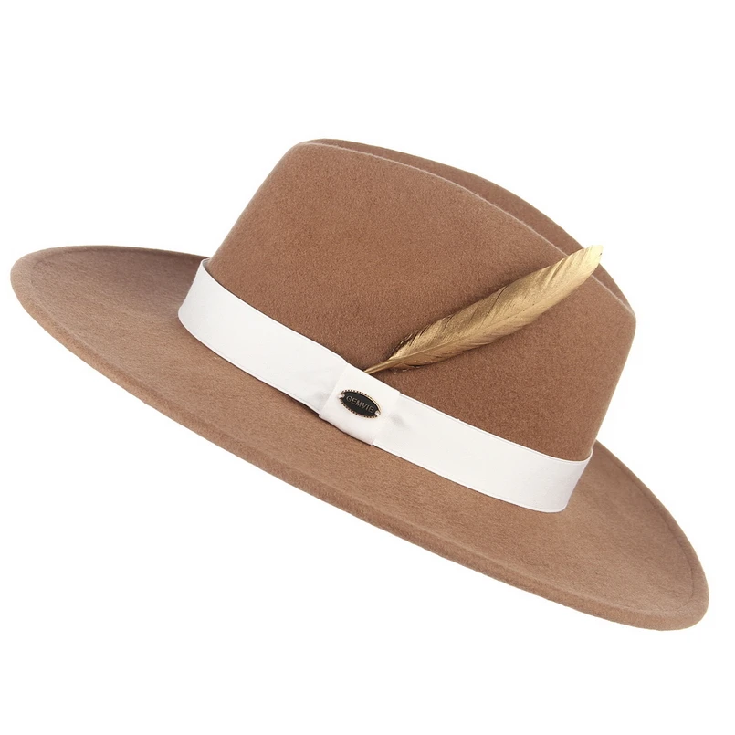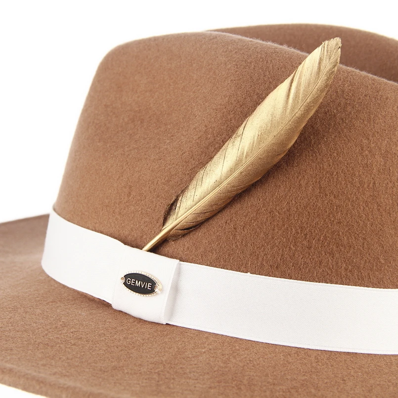 Handmade fedora hat by GEMVIE Material:100% wool felt, brim: 8cm, size:56-58cm. Classic design with feathers make you so fashion, elegant and charming Warm and soft to wear for spring,autumn and winter.Perfect for casual,wedding, shopping,tea parties, church,race day events or any outdoor activities. Packing with gift box,guarantee safety. Gender:Women/Men