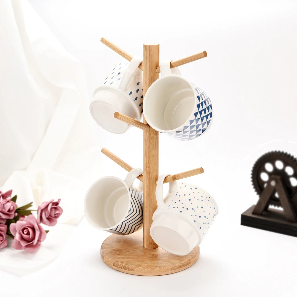 6 крючков в форме дерева деревянный стеллаж для хранения чайной чашки, держатель для ключей, подставка для дома, кухни, Висячие на кружке, дисплей, посуда для напитков, полка для ванной комнаты