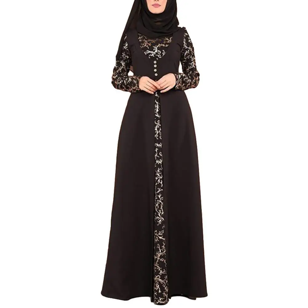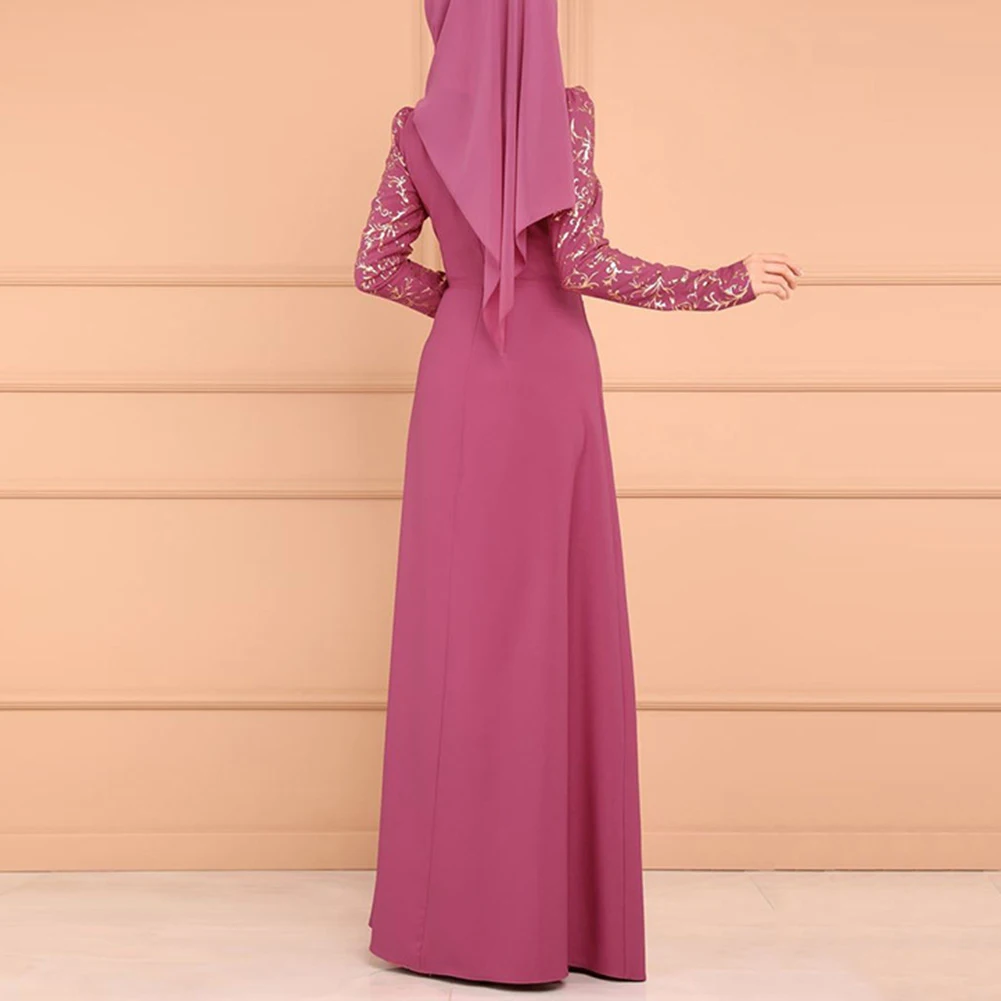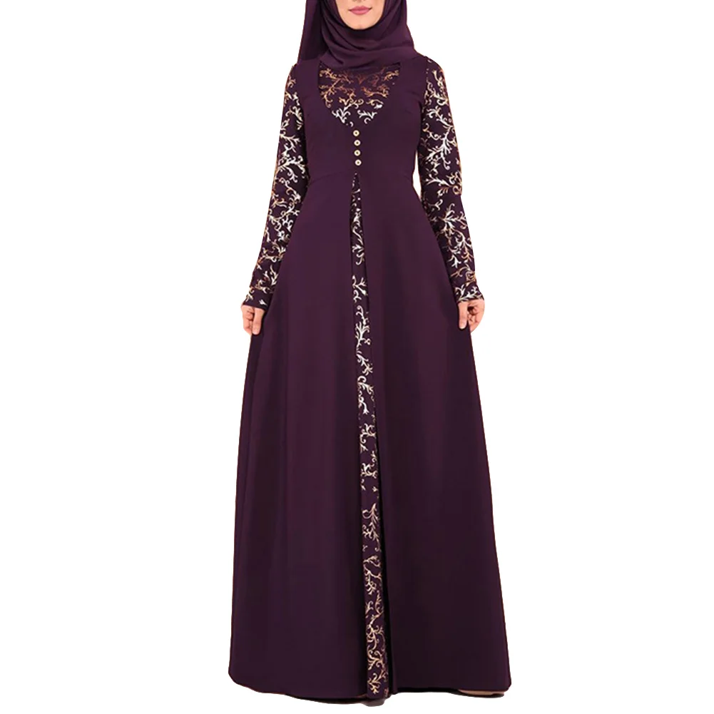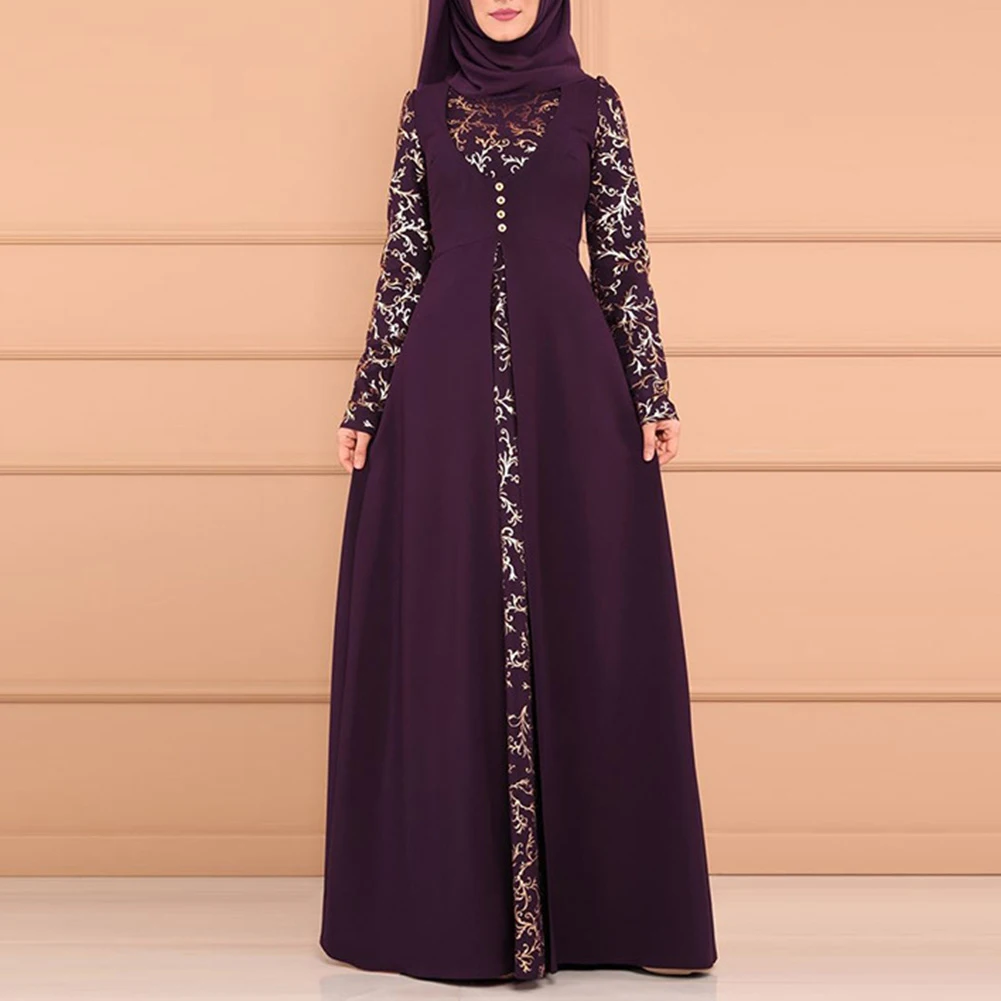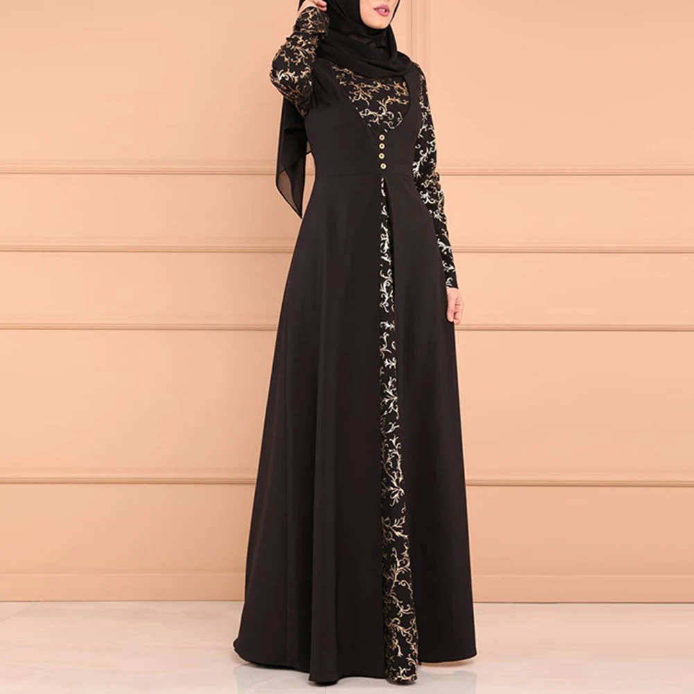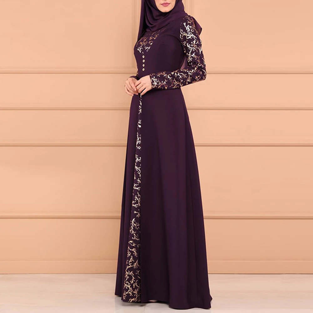 Вечерние, элегантные, с цветочным узором, с горячей штамповкой, мусульманское Женское Платье макси с длинным рукавом, арабское, кафтан (без хиджаба)