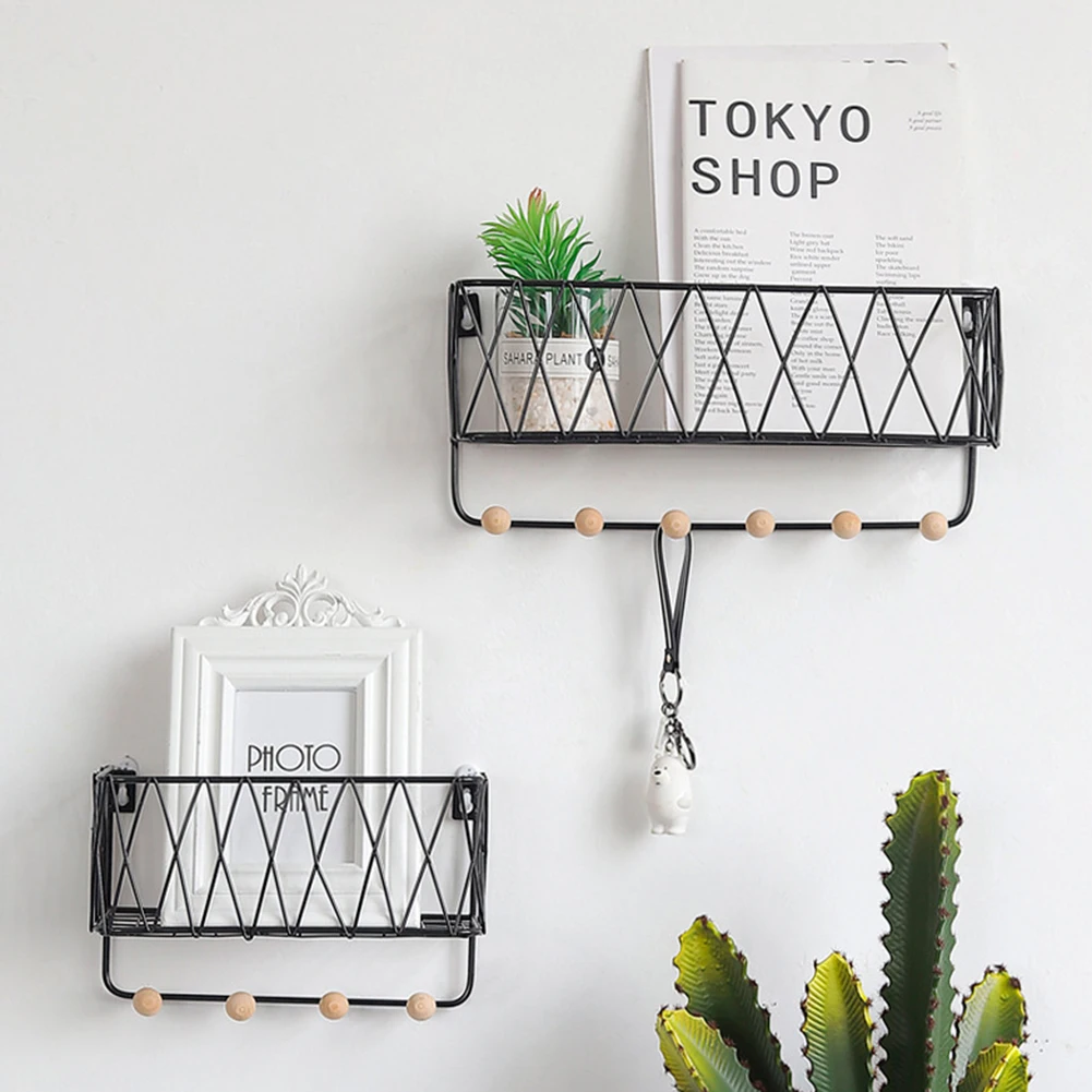 Металлический деревянный настенное крепление полка корзина крючки держатель книги органайзер для хранения