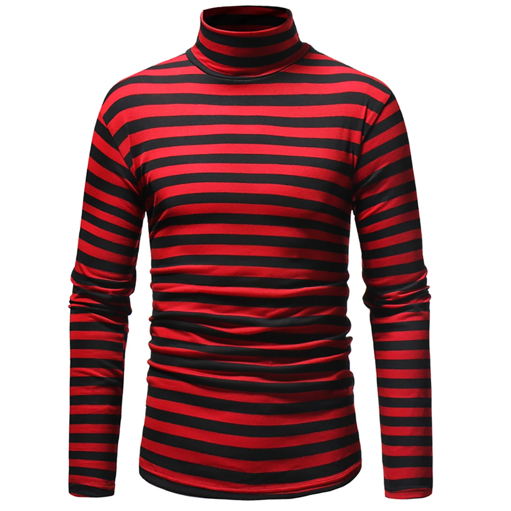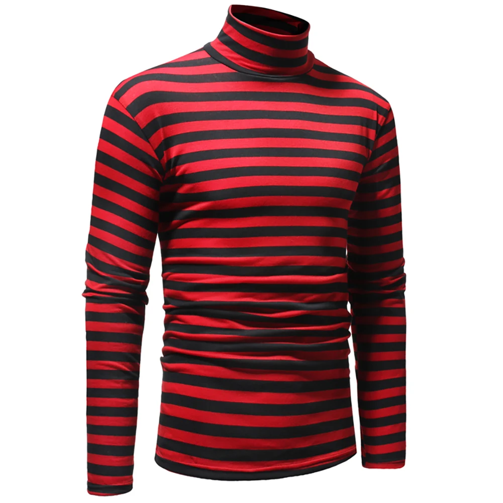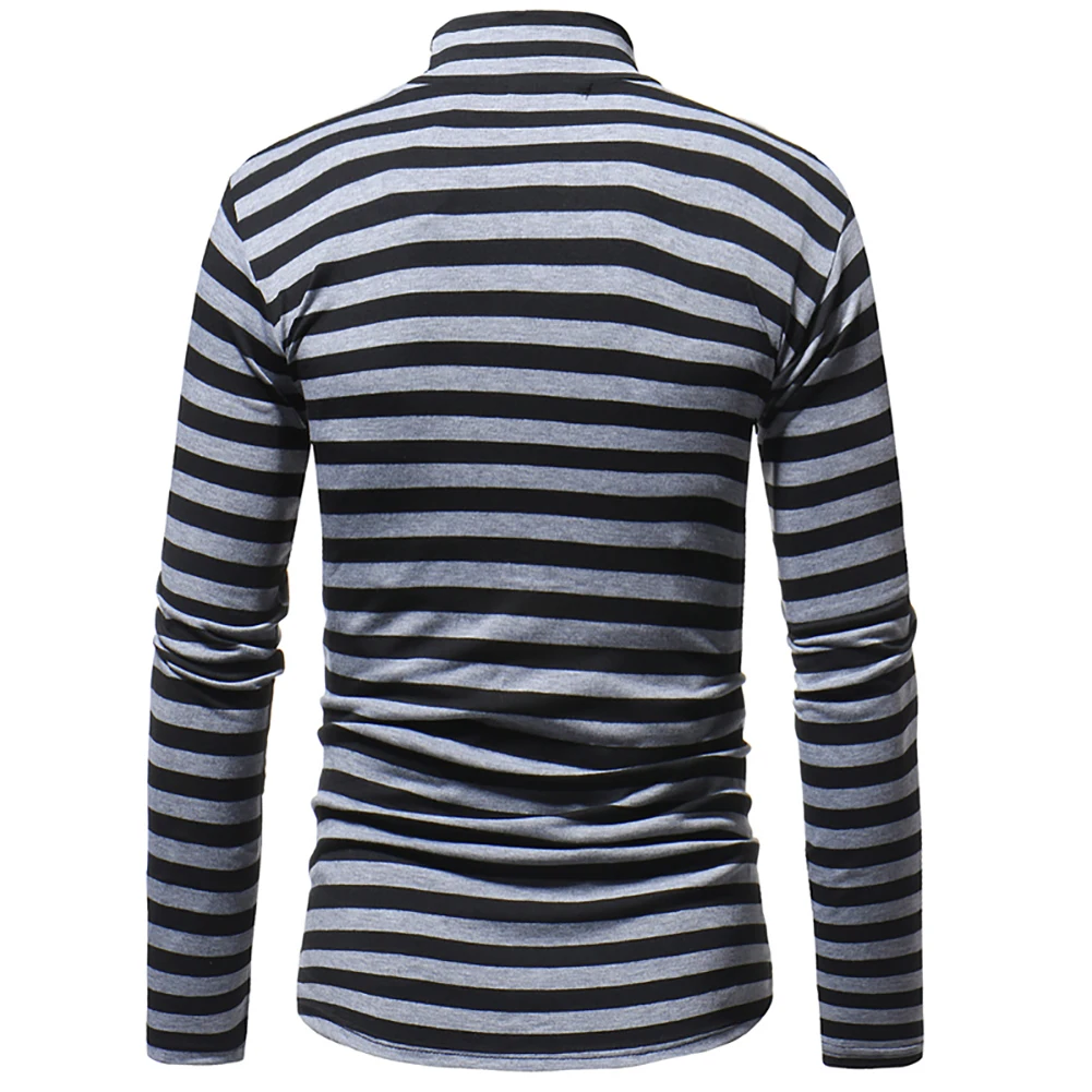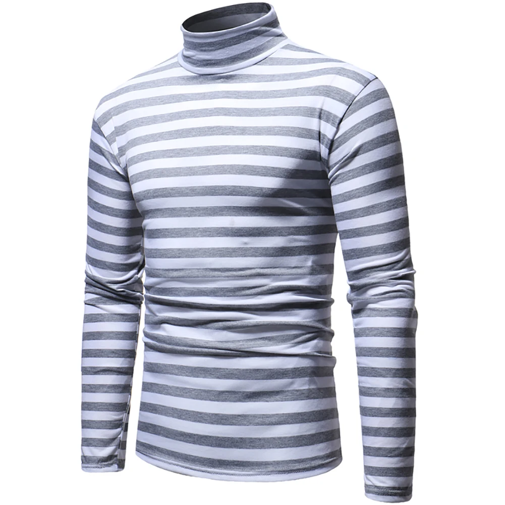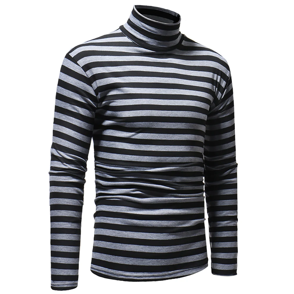 Модные мужские свитера, Полосатый пуловер с узором, осенний теплый Повседневный свитер с воротником-черепашкой