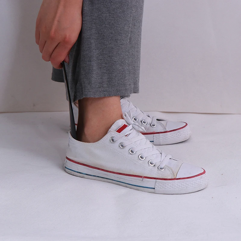 Положите ноги в обувь и с помощью рога вставьте обувь и плотно прилегайте к пятке, после того как вы носите обувь и выньте ее.